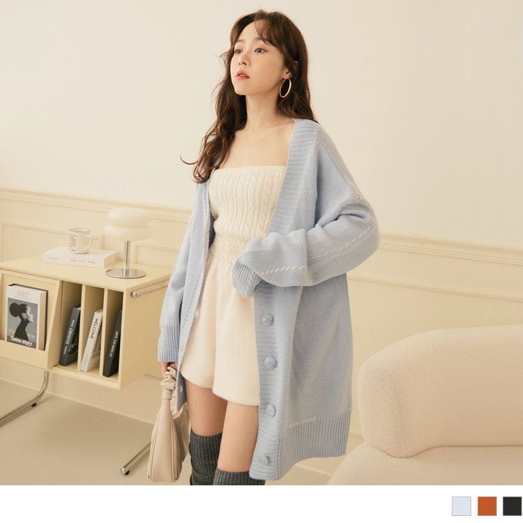 DROP SHOULDER LONGLINE LONG SLEEVE KNIT CARDIGANS