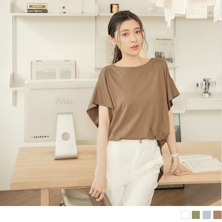 DROP SHOULDER ROUND-NECK SHORT SLEEVE TOPS