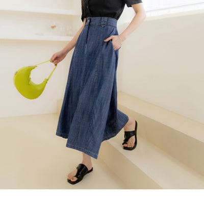 CASUAL MEDIUM WAIST DENIM A-LINE MIDI SKIRTS