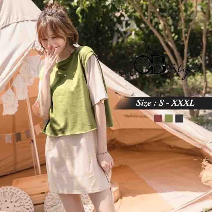 COTTON FAKE TWO PIECE TOPS