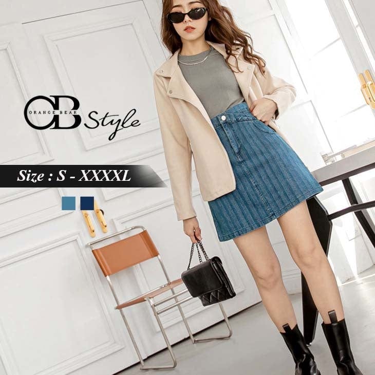 COTTON POCKET STRIPED A-LINE DENIM MINI SKIRTS