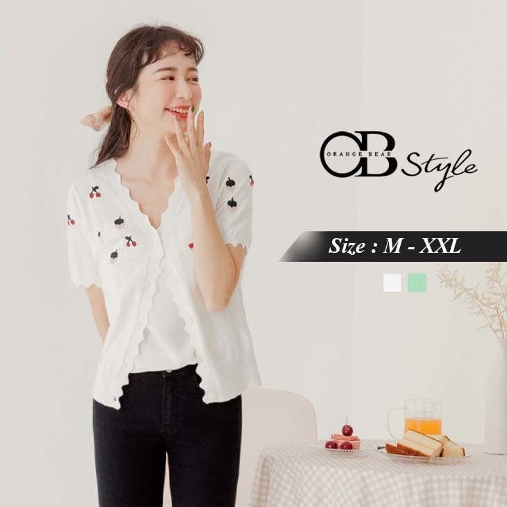 COTTON KNIT EMBROIDERED BUTTONS SHORT SLEEVE TOPS