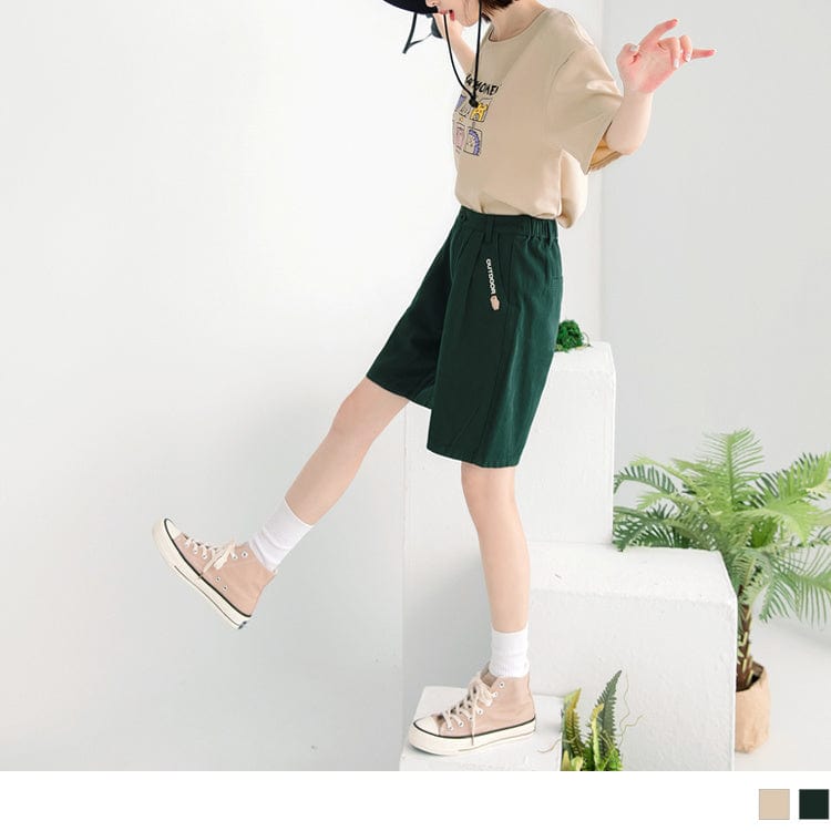 COTTON PLEAT ELASTIC WAIST SHORTS