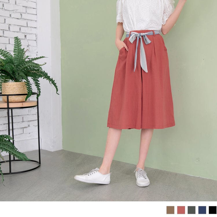 COTTON ELASTIC WAIST BOWKNOT MIDI SKORTS