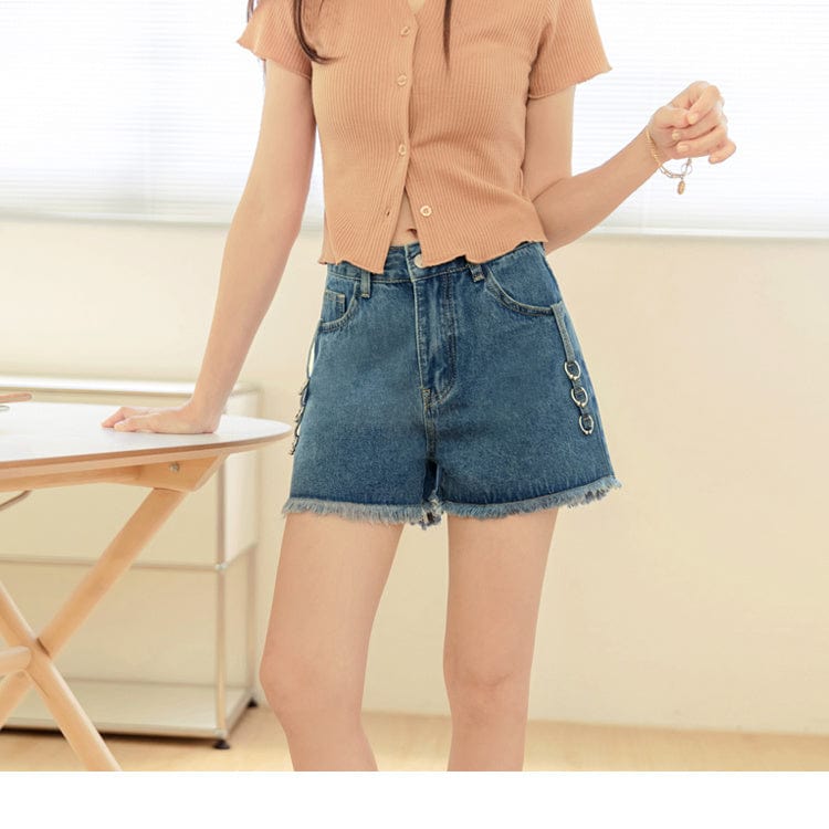 COTTON BUTTON DENIM SHORTS