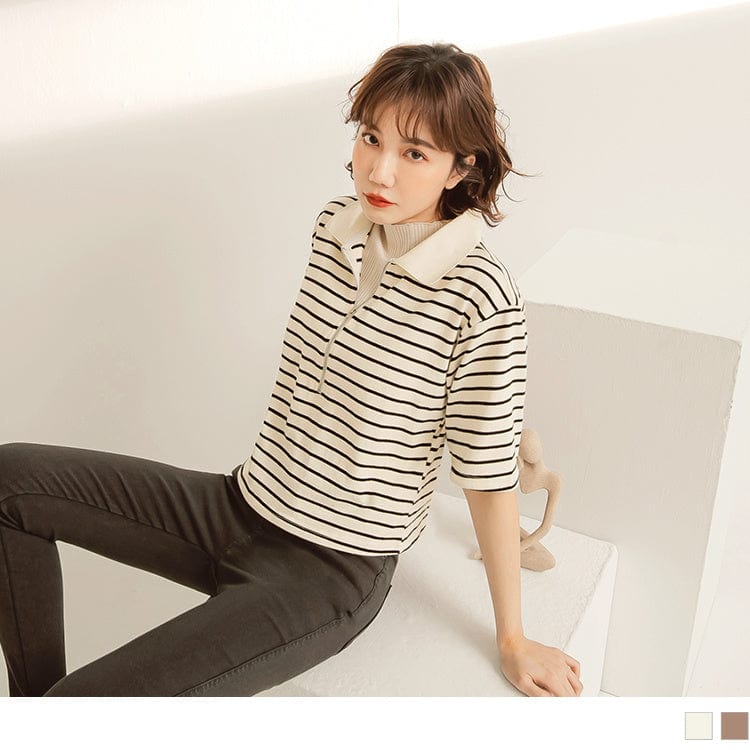 CONTRAST COLOR STRIPED SHORT SLEEVE TOPS
