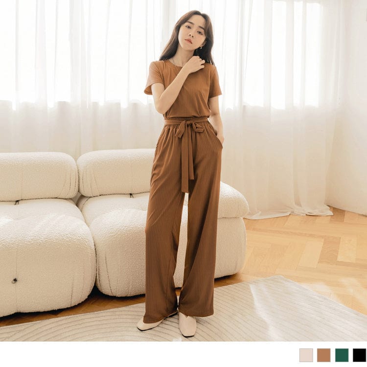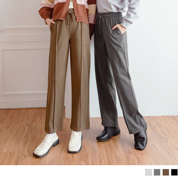 CASUAL ELASTIC WAIST STRAIGHT WIDE LEG LONG PANTS