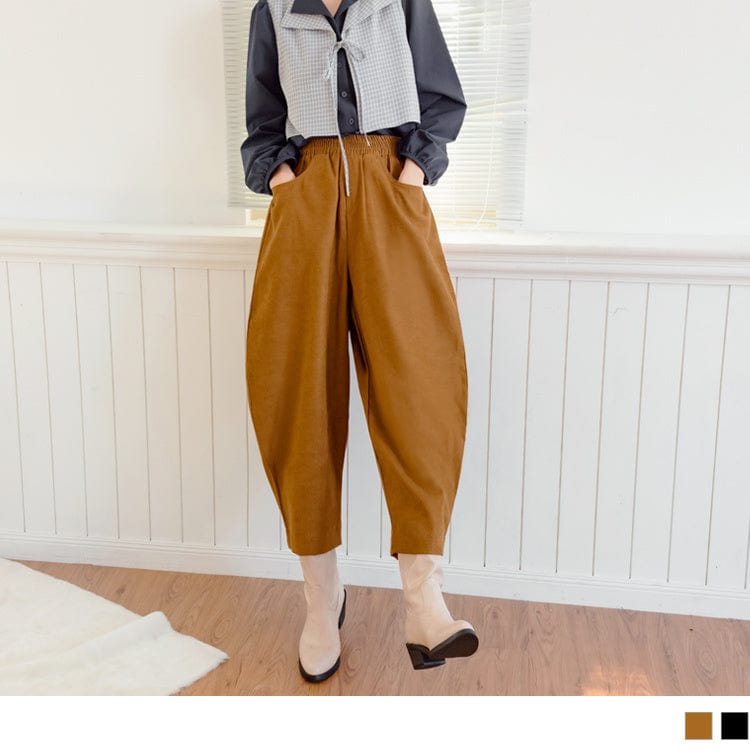 CASUAL ELASTIC WAIST POCKETS HAREM LONG PANTS