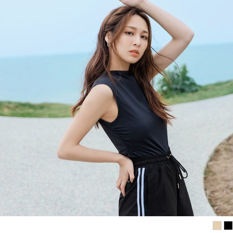 CASUAL HIGH NECK SLEEVELESS CROP TOPS