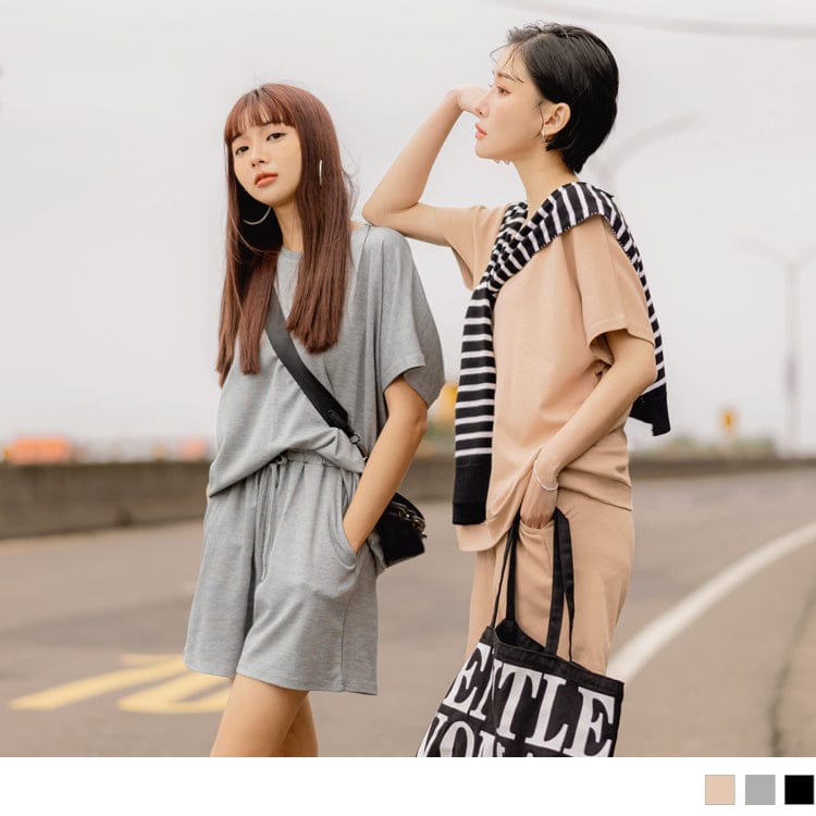 COTTON FABRICS DROP SHOULDER SHORT SLEEVE TOPS