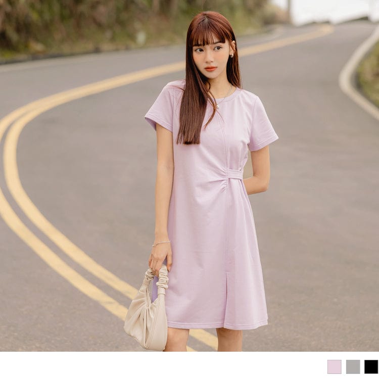 CASUAL ROUND NECK ASYMMETRICAL MINI DRESS