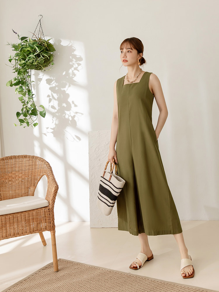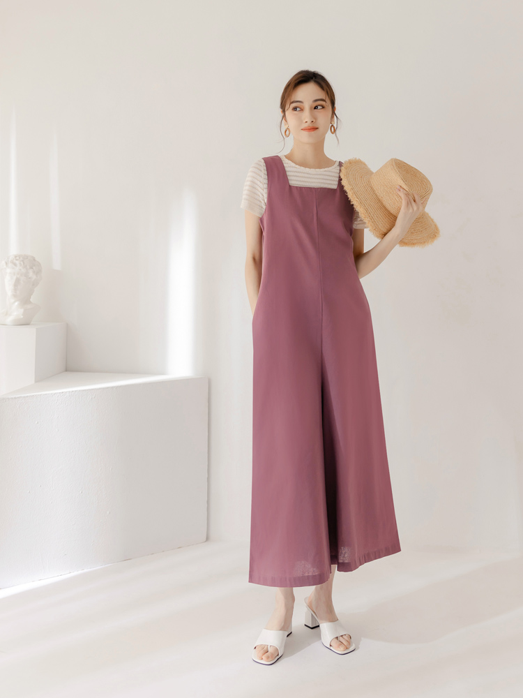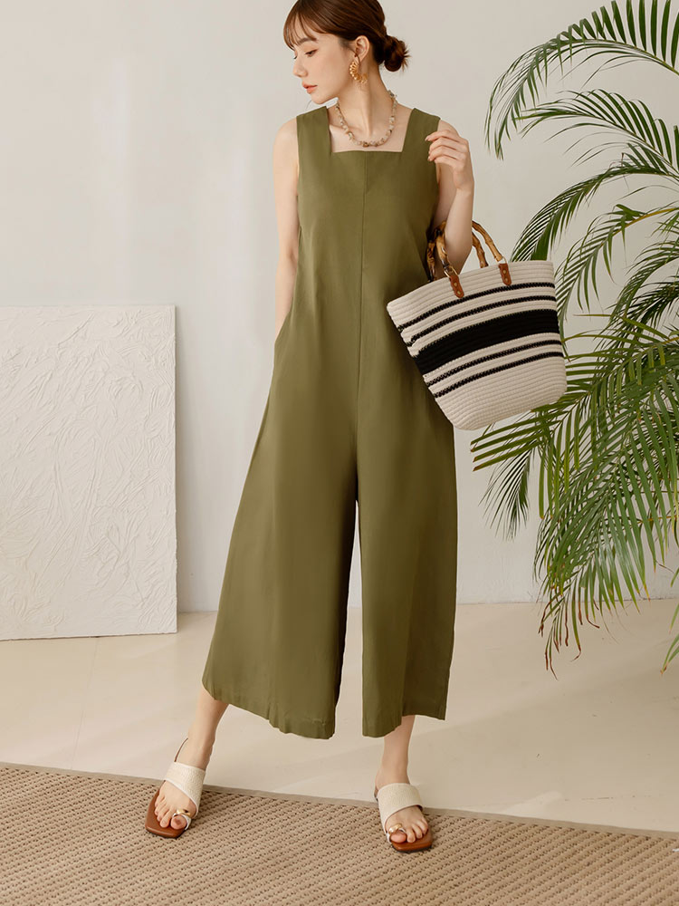 BA7157 Korean Long Sleeveless Jumpsuit Wide Leg Culottes Pants