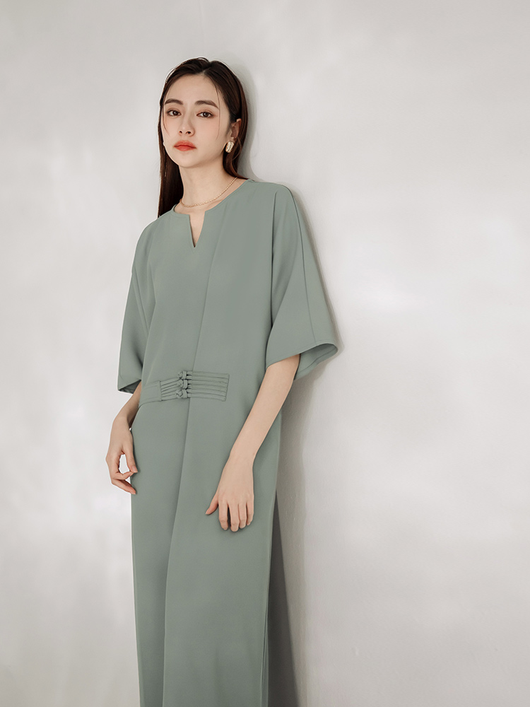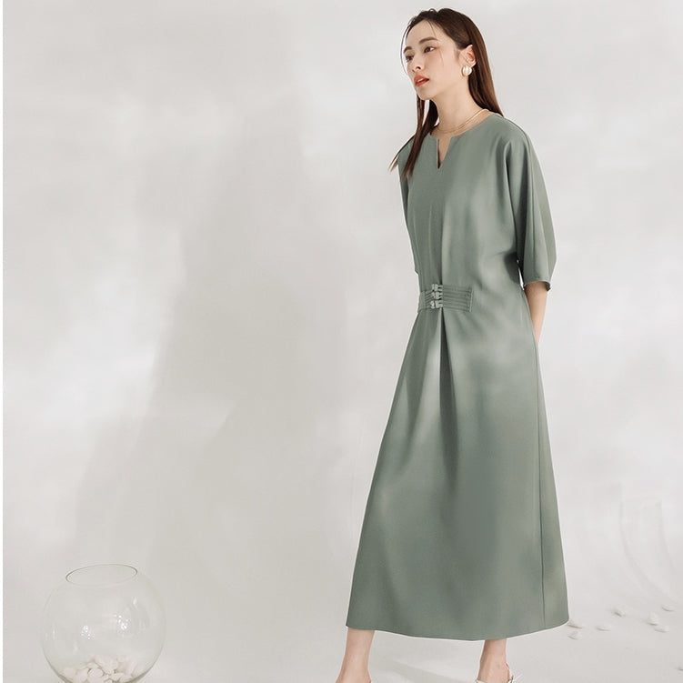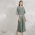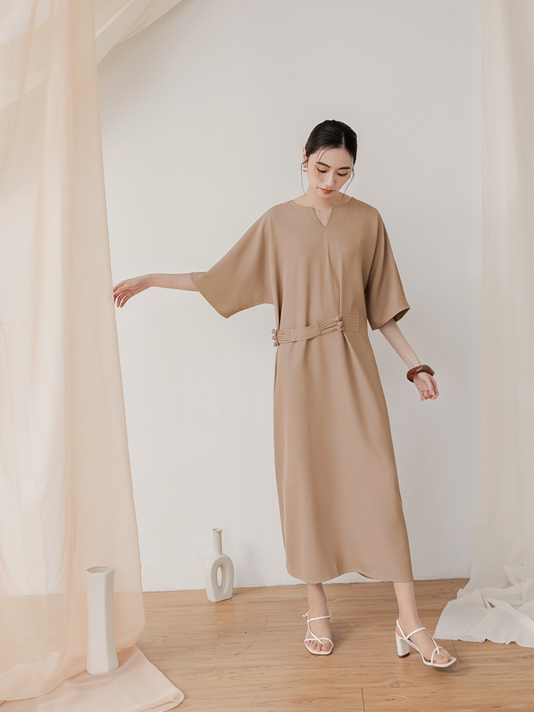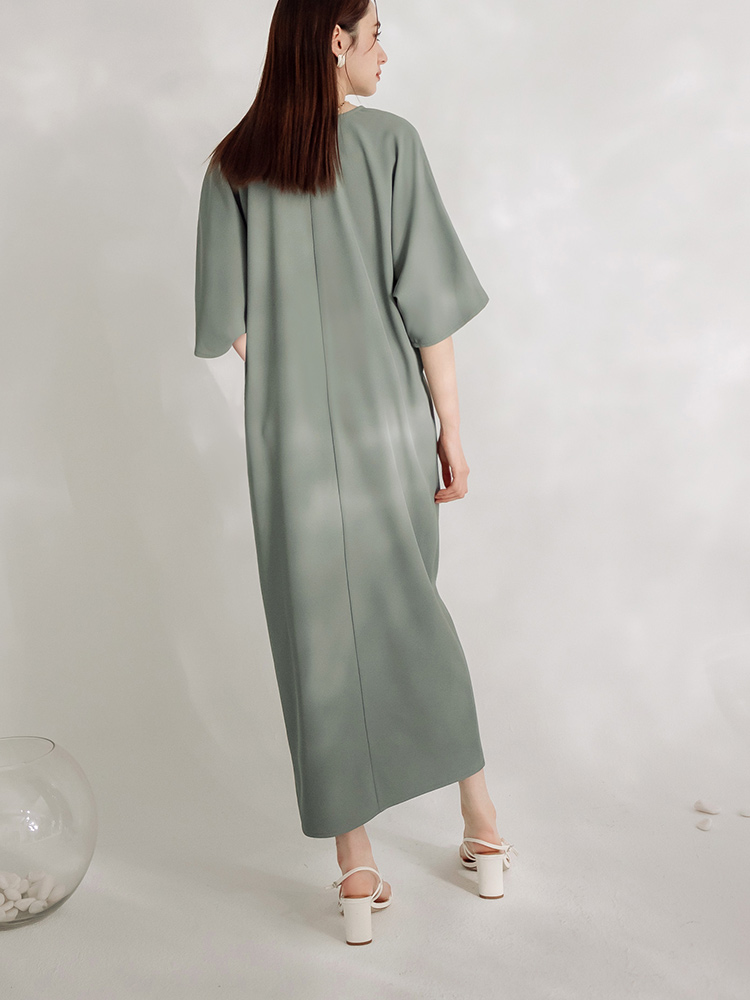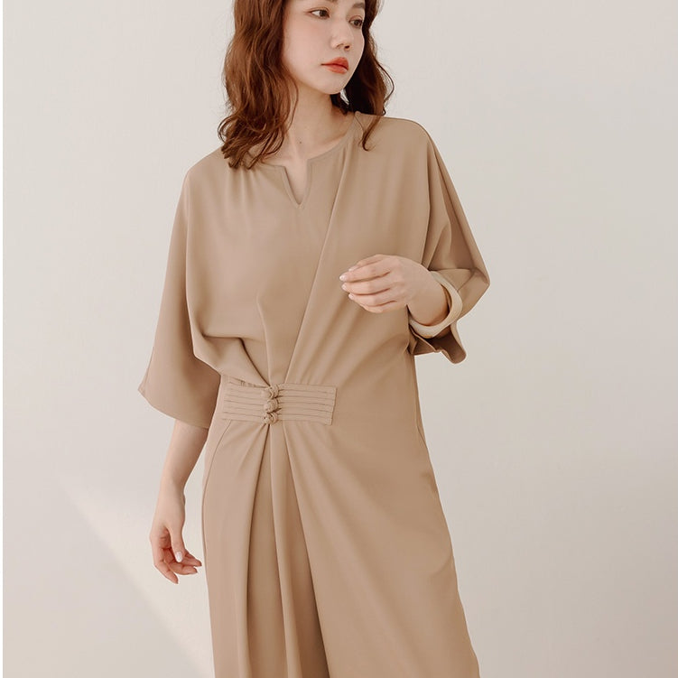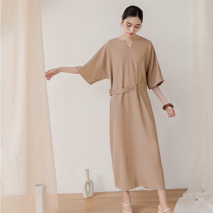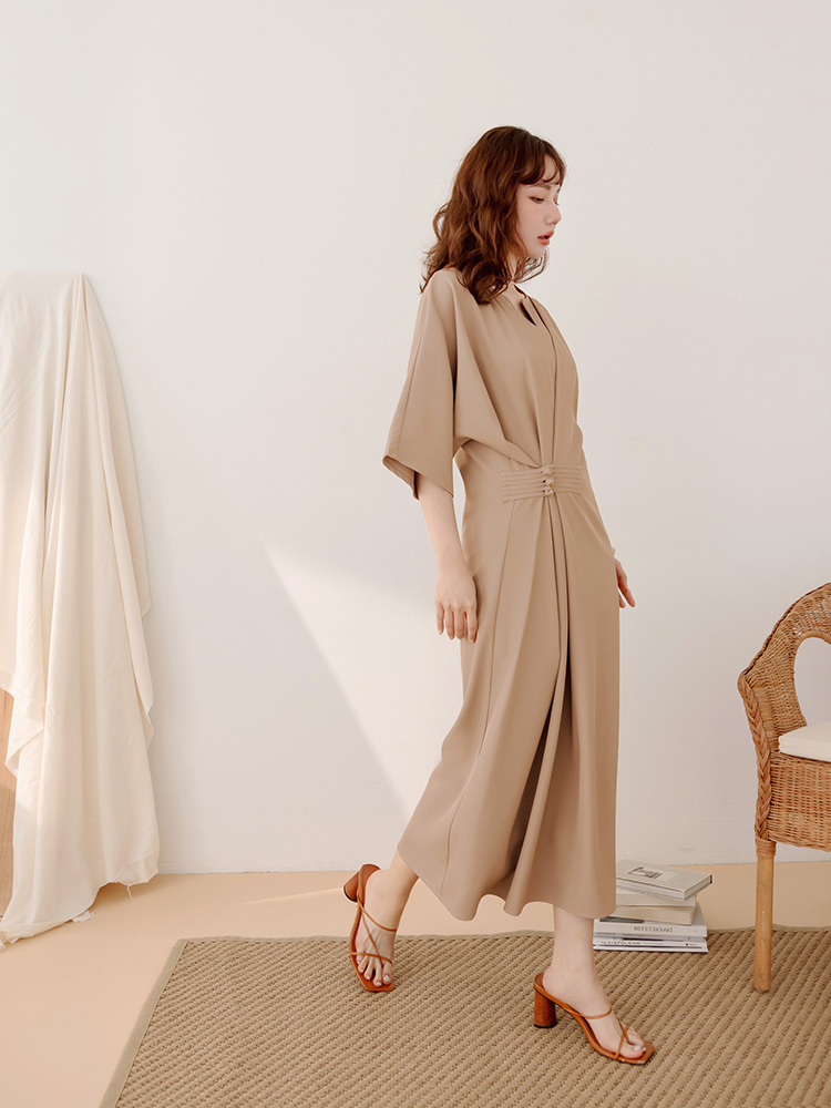 Basic Korean Wrinkle Free Open Collar Long Maxi Dress