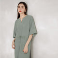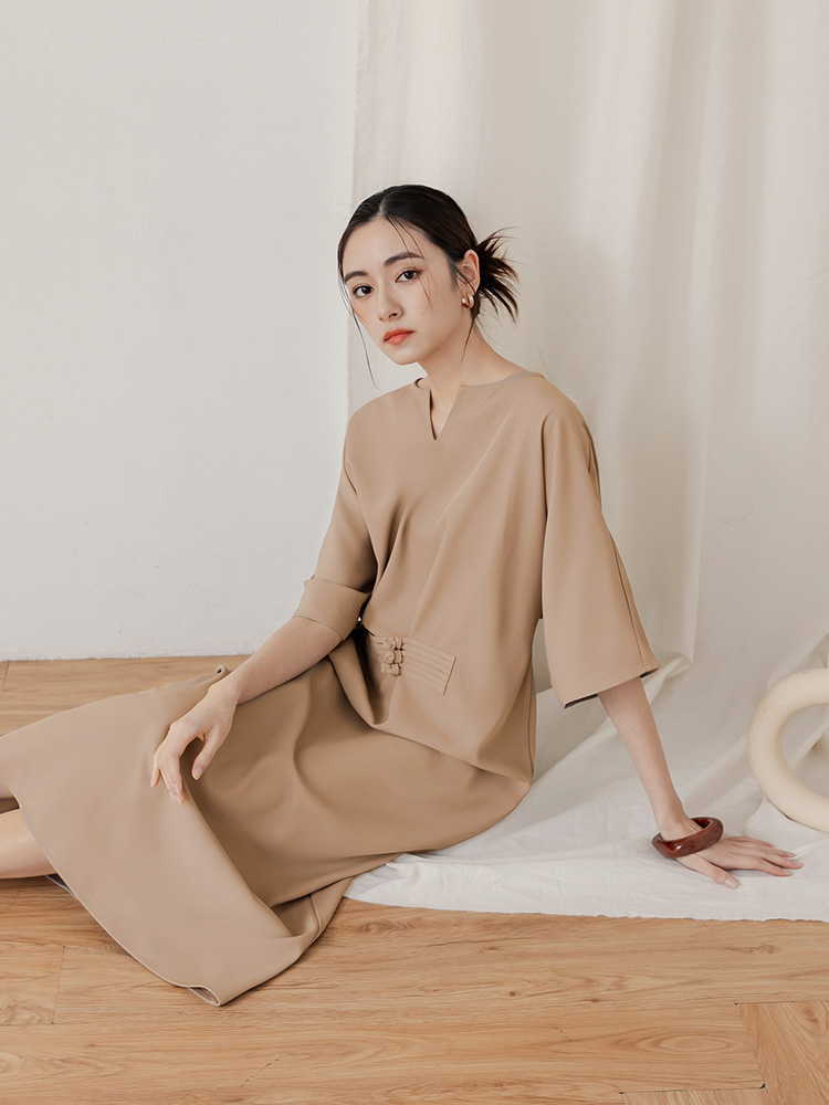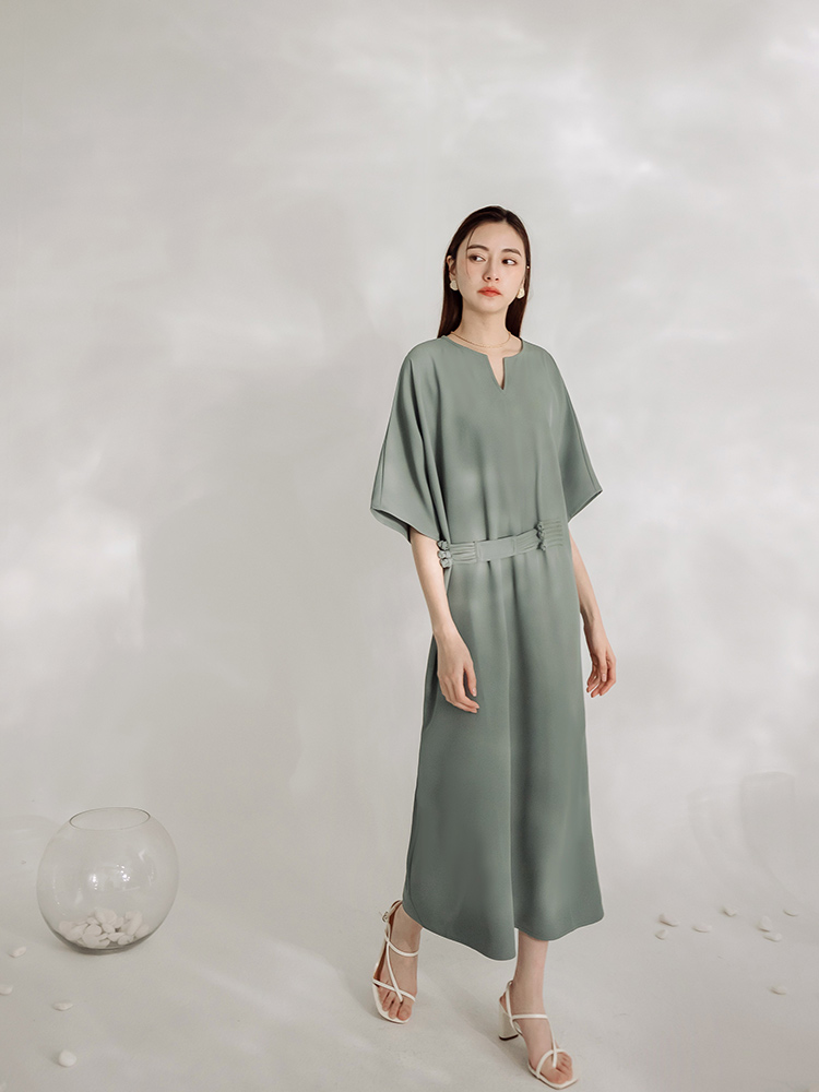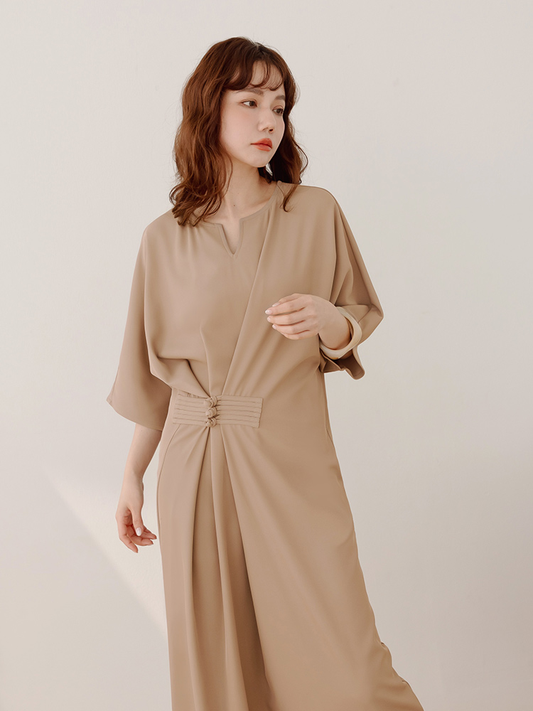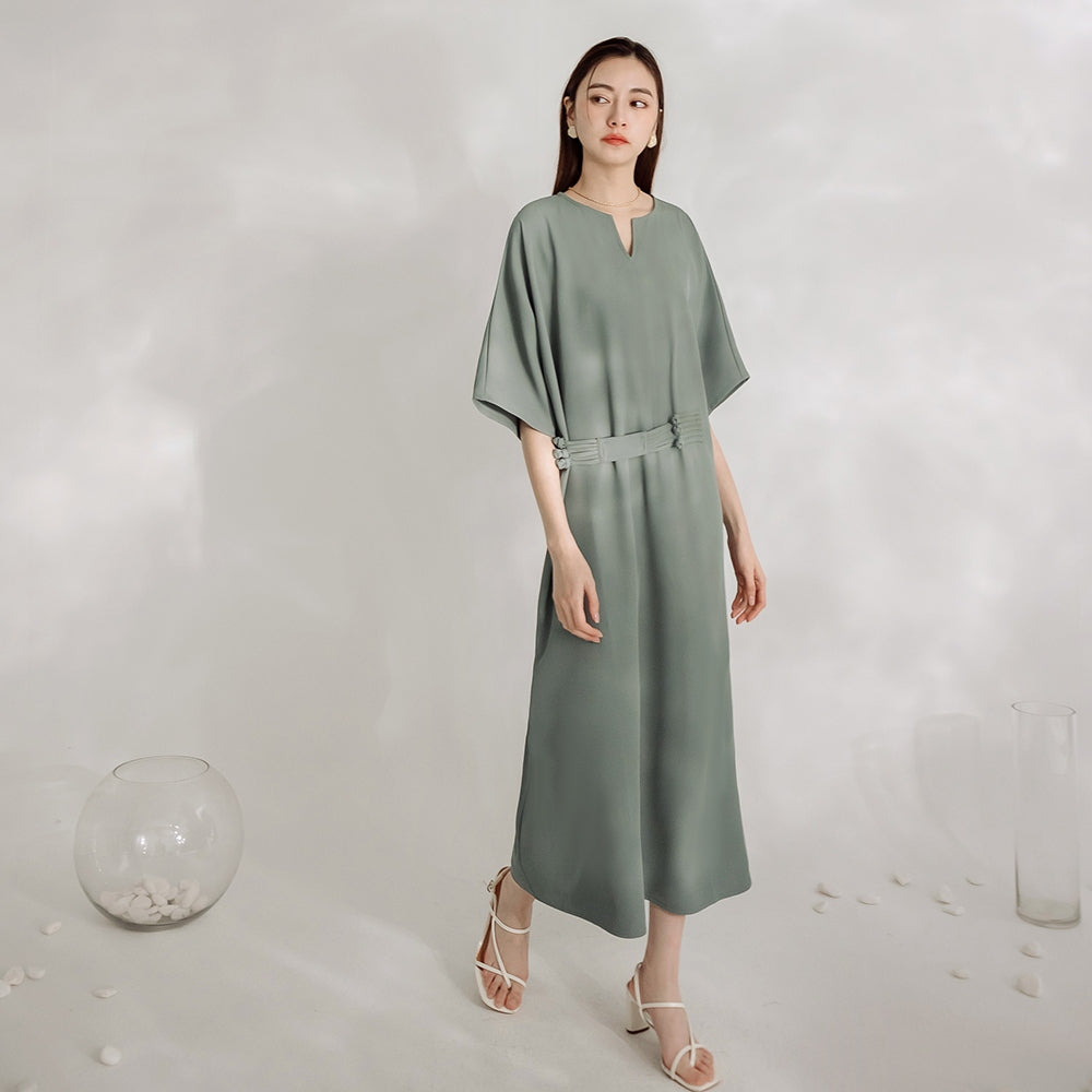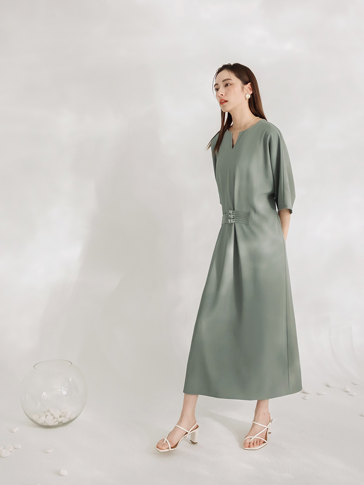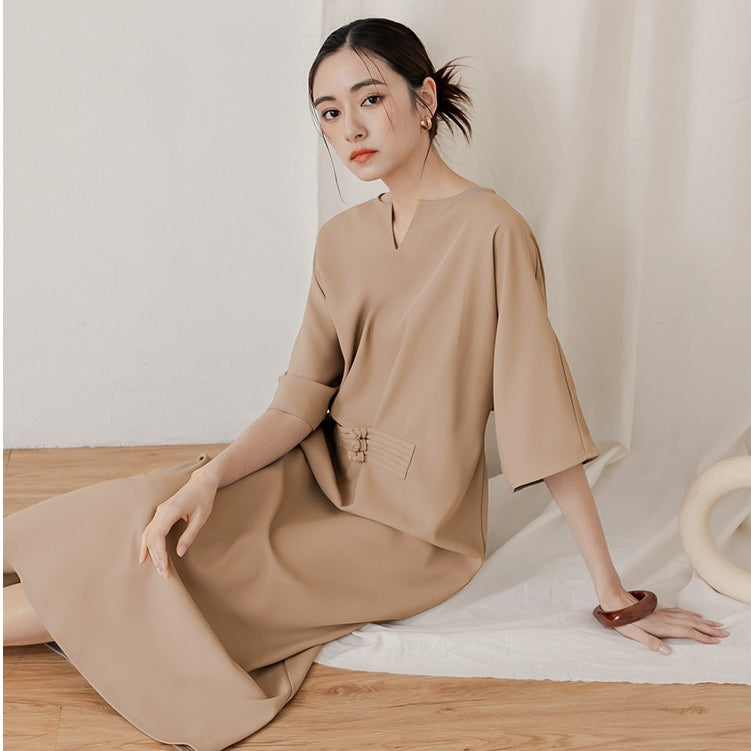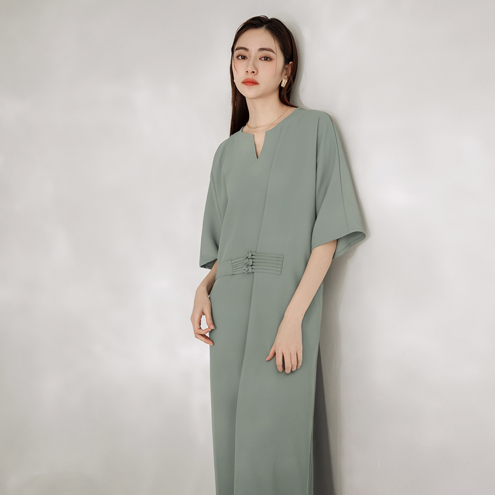 Basic Korean Wrinkle Free Open Collar Long Maxi Dress