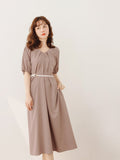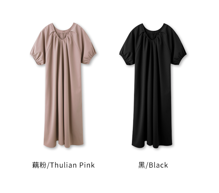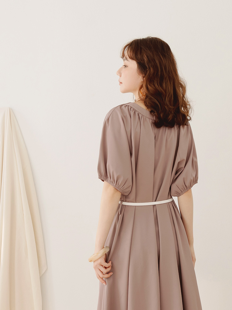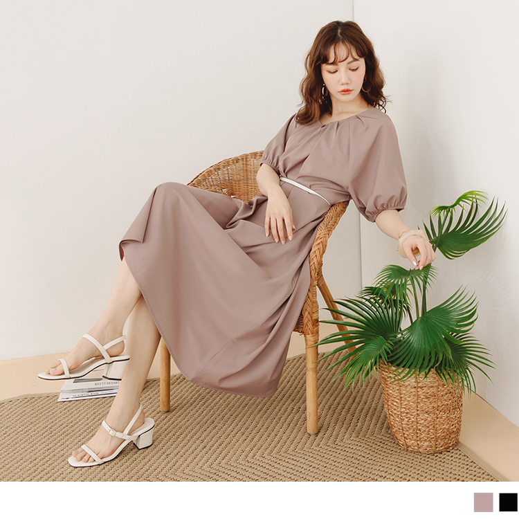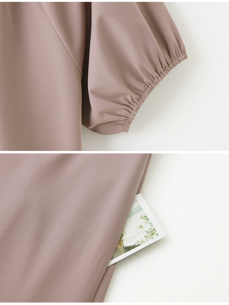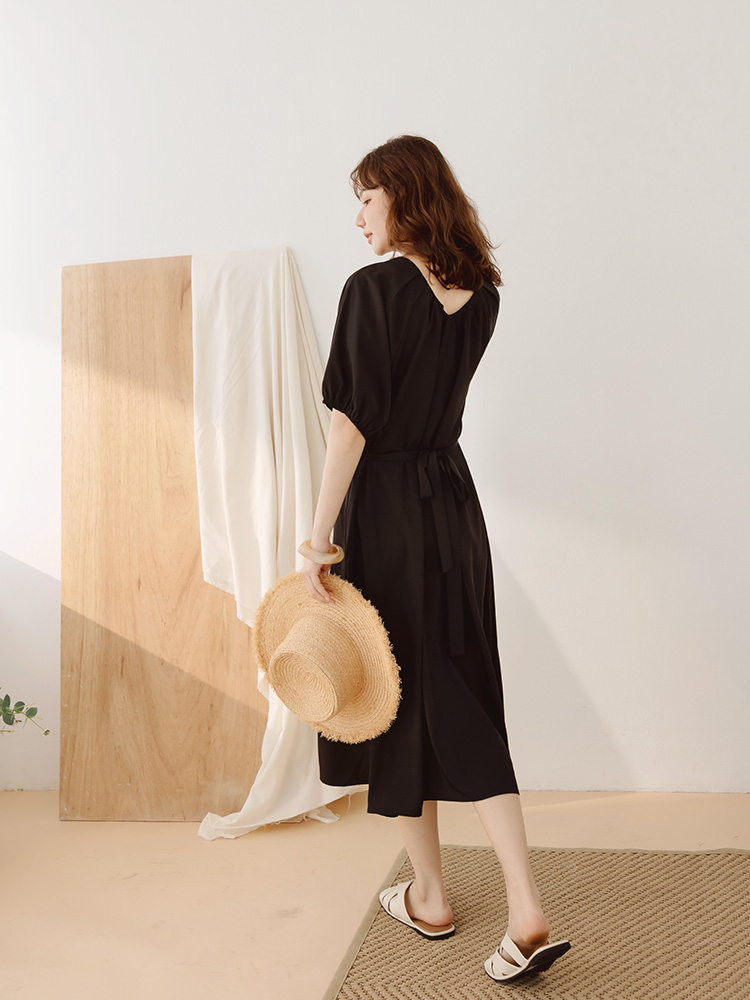 Basic Solid Plain Puff Sleeve Long Summer Dress