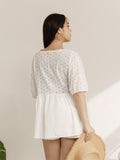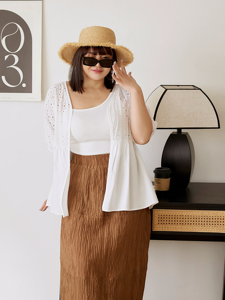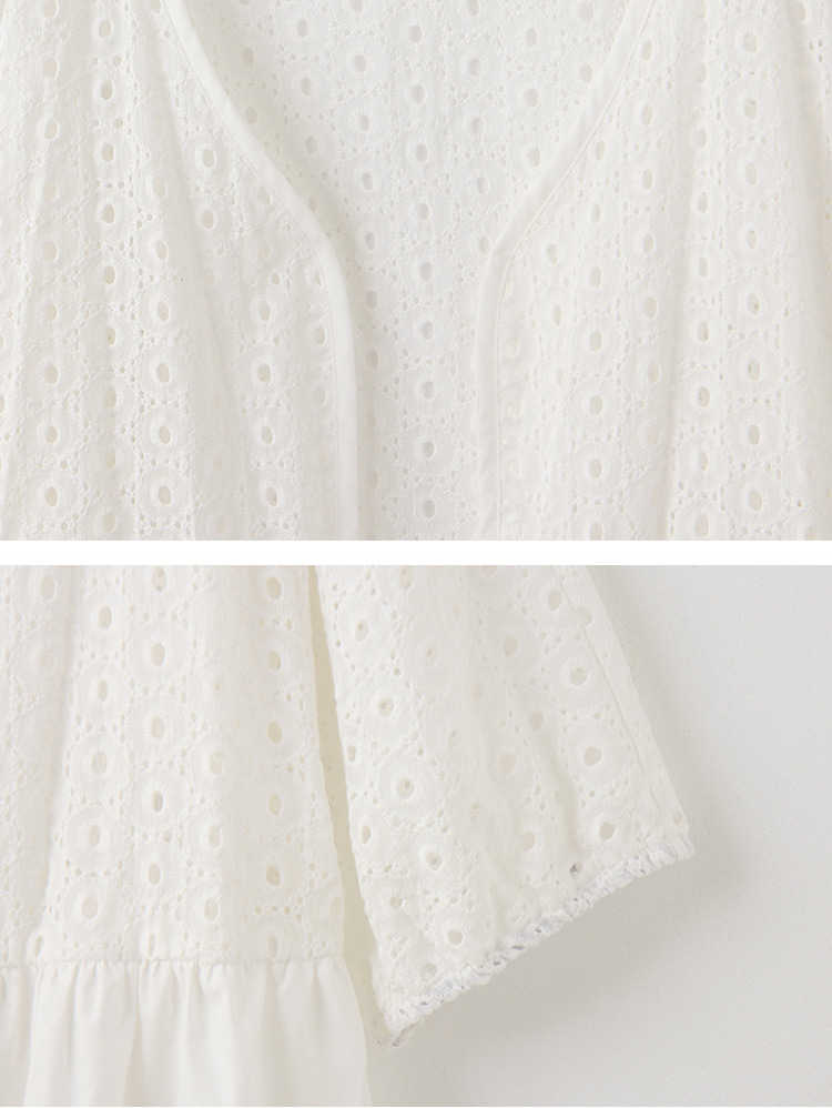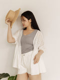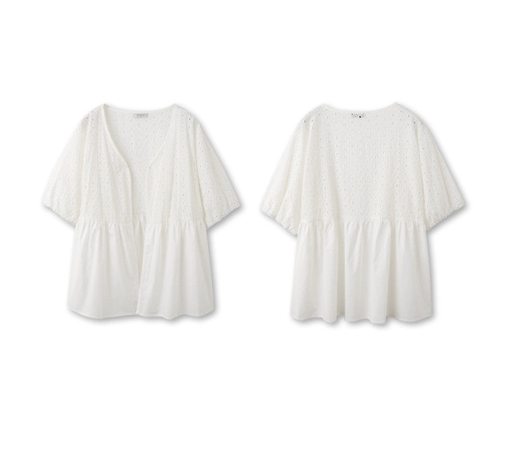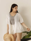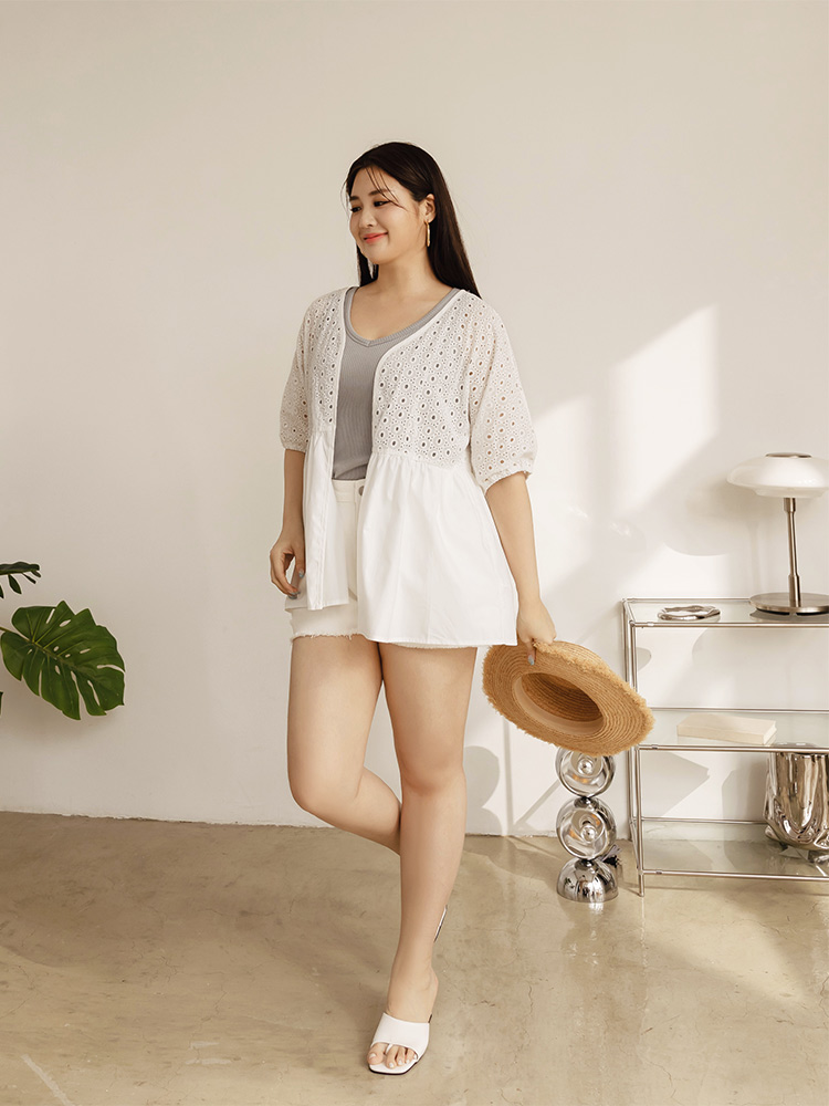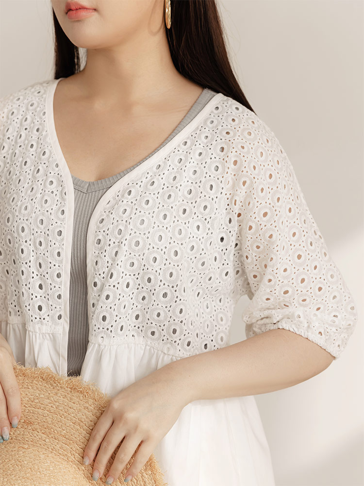 Casual Basic White Eyelet Cotton Cardigan Jacket Top