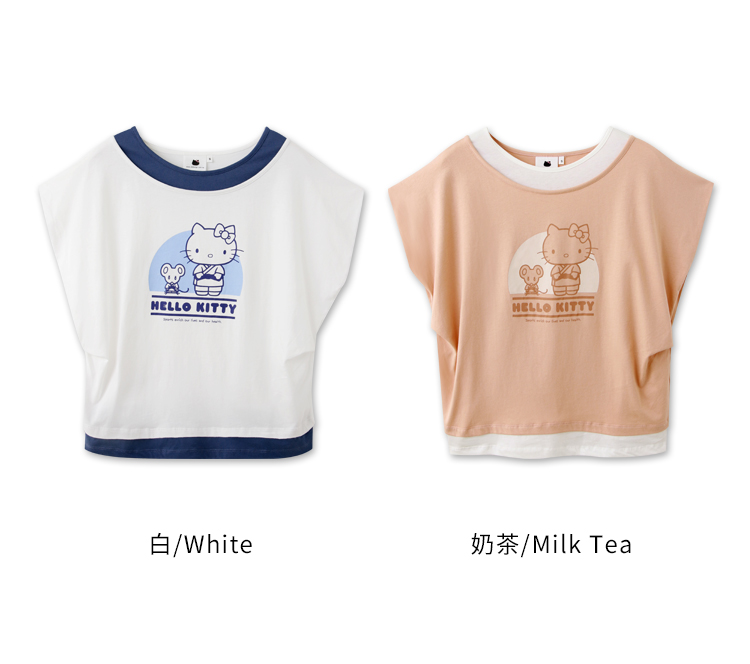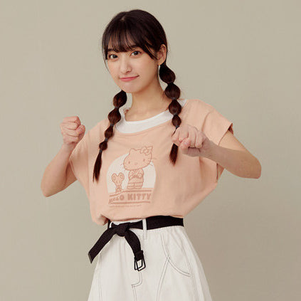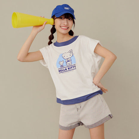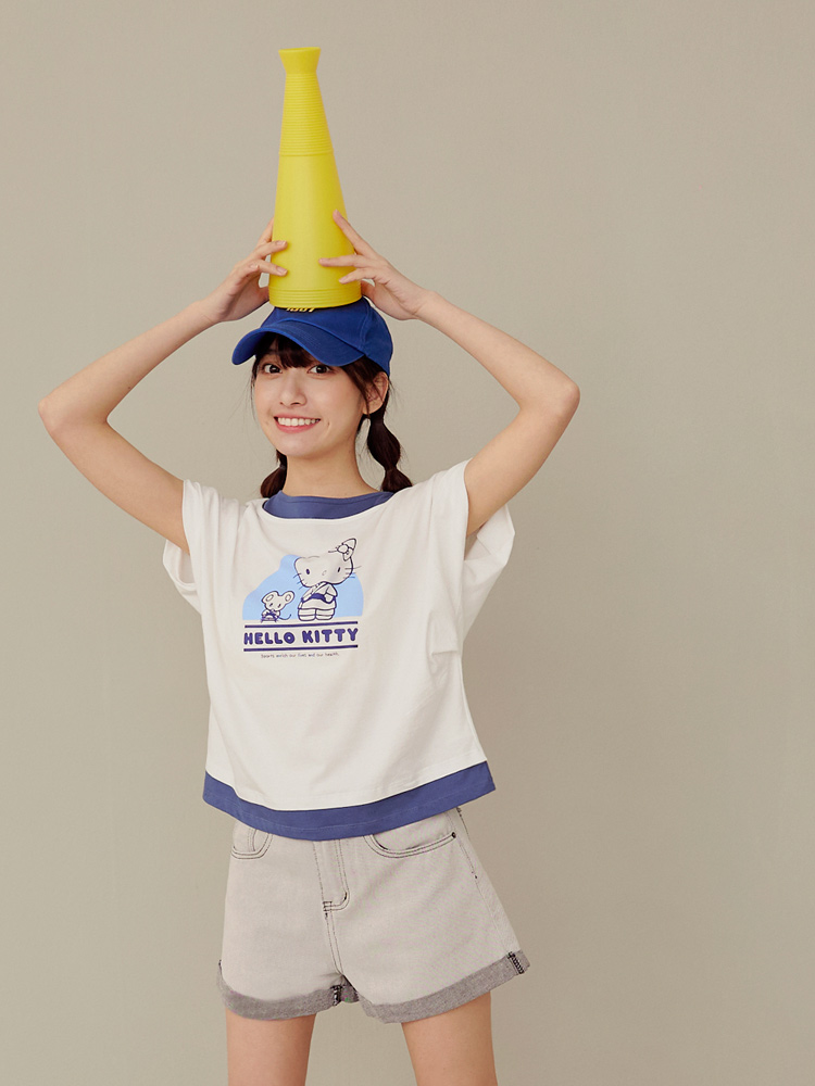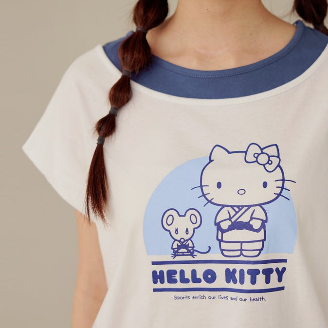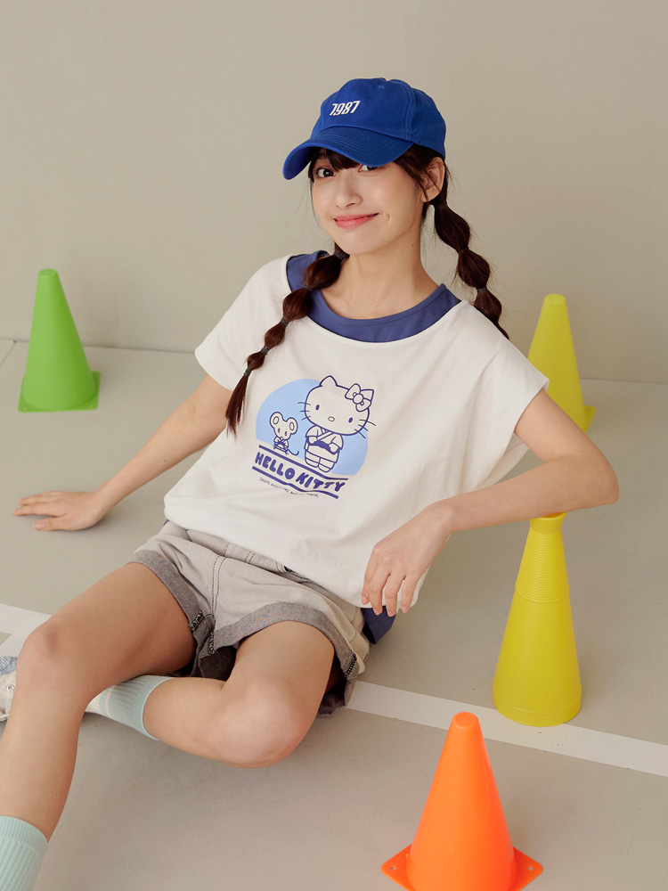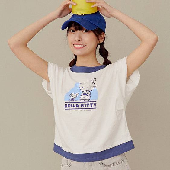 Casual Hello Kitty Colorblock Cotton T-Shirt Top