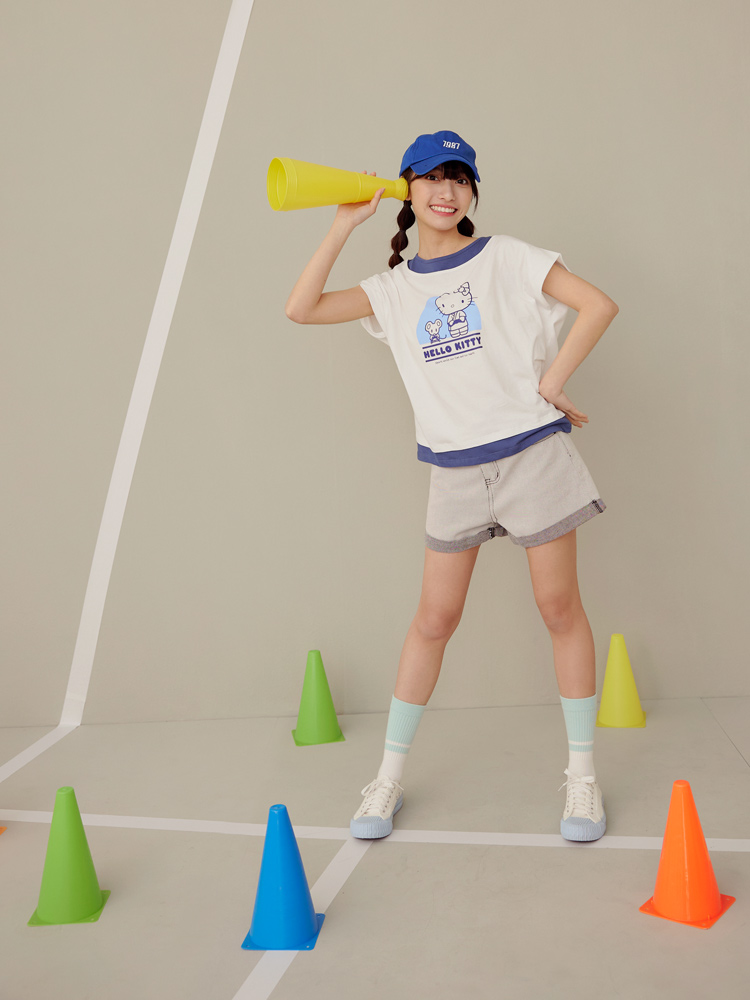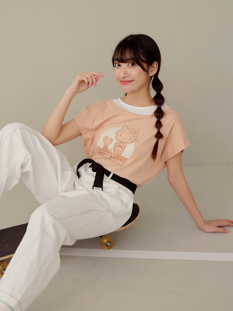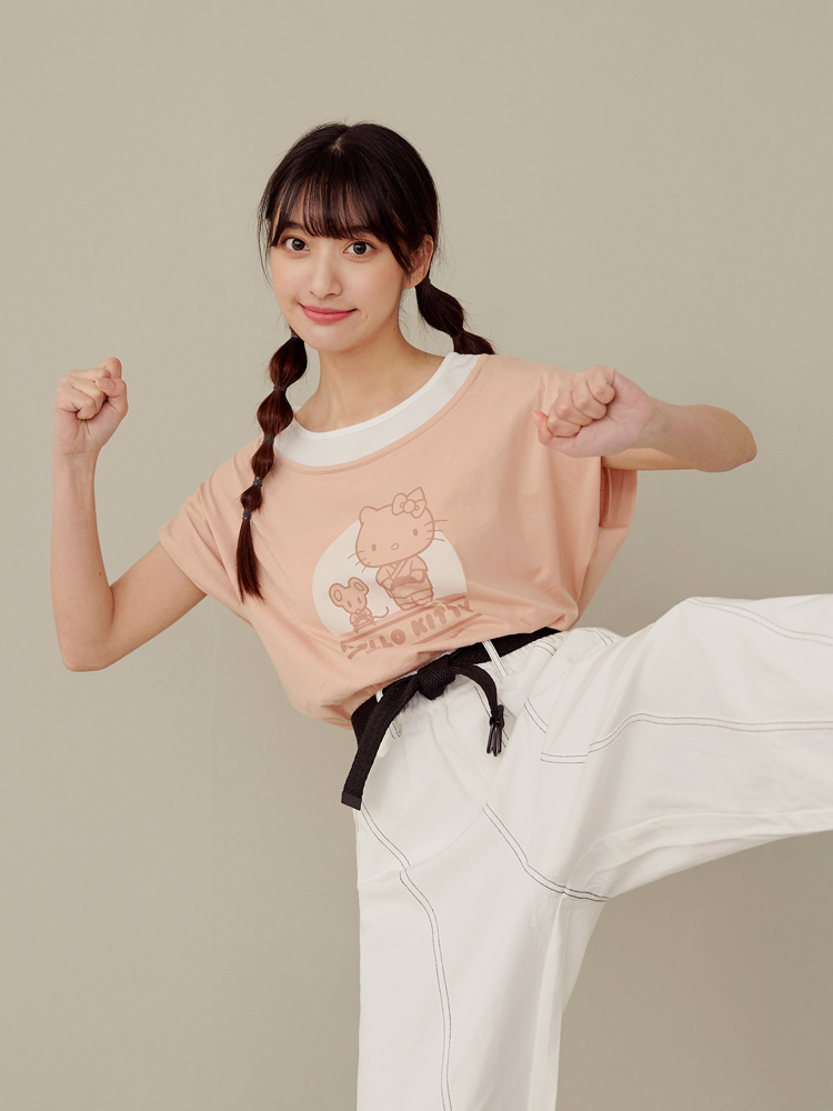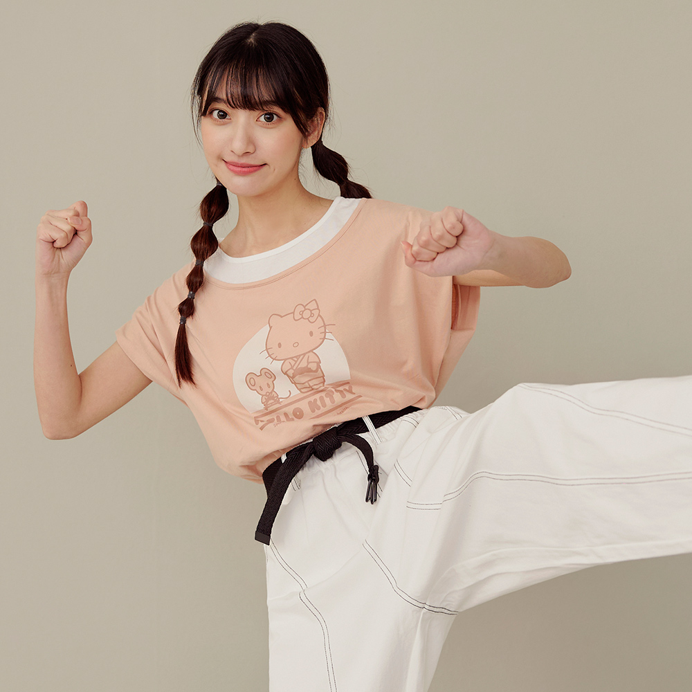 Casual Hello Kitty Colorblock Cotton T-Shirt Top