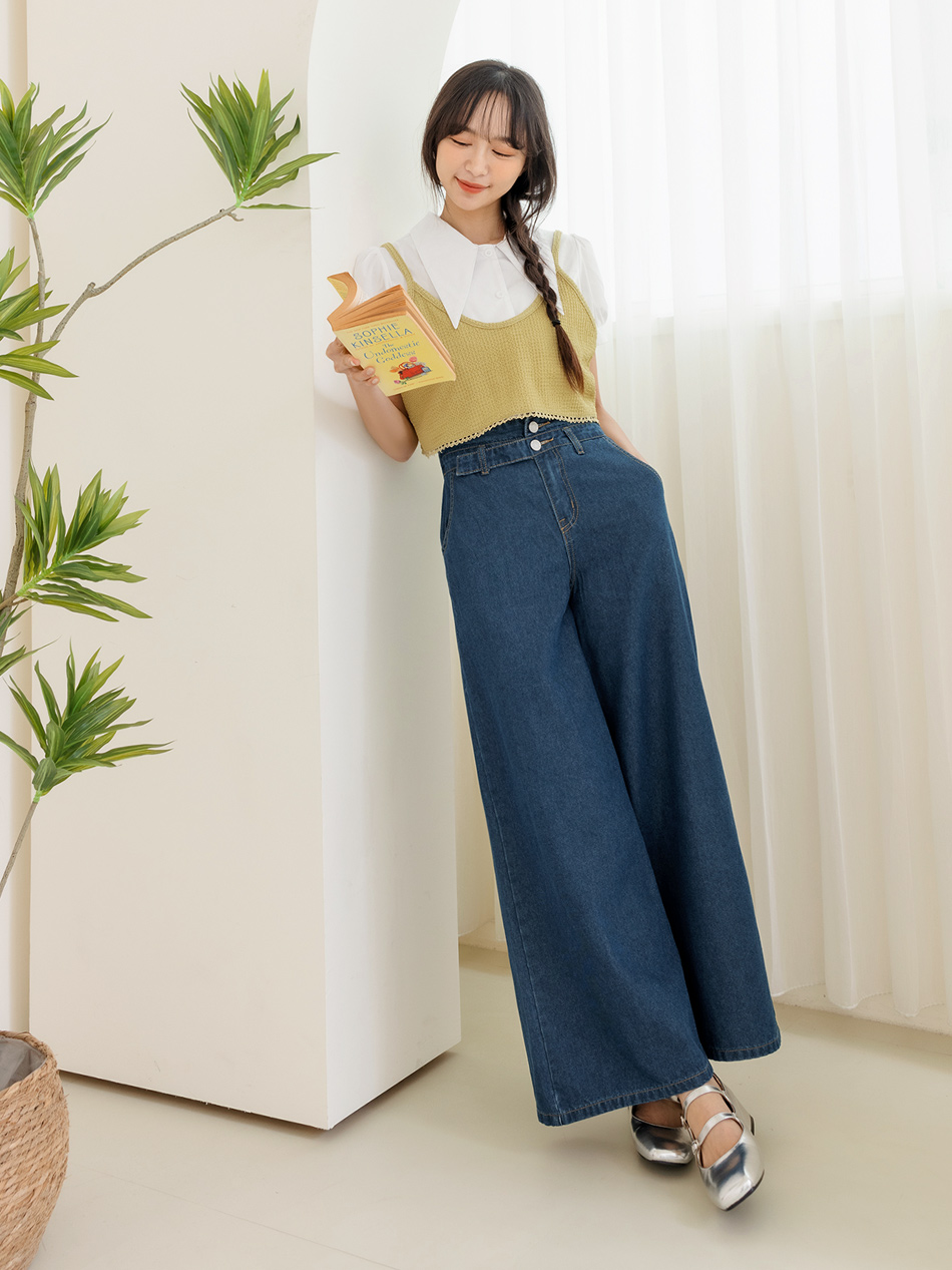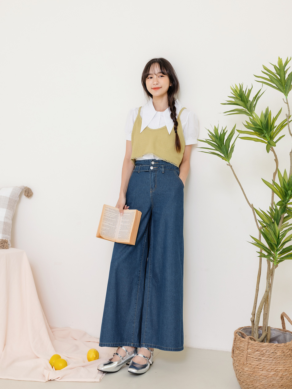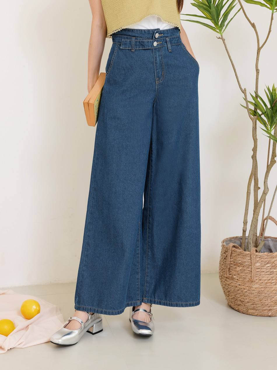 Casual Long Wide Leg Culottes Denim Jeans Pants