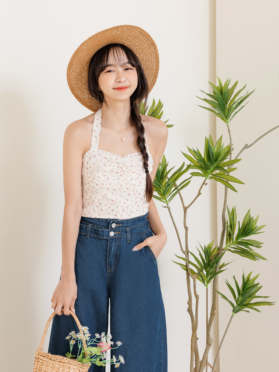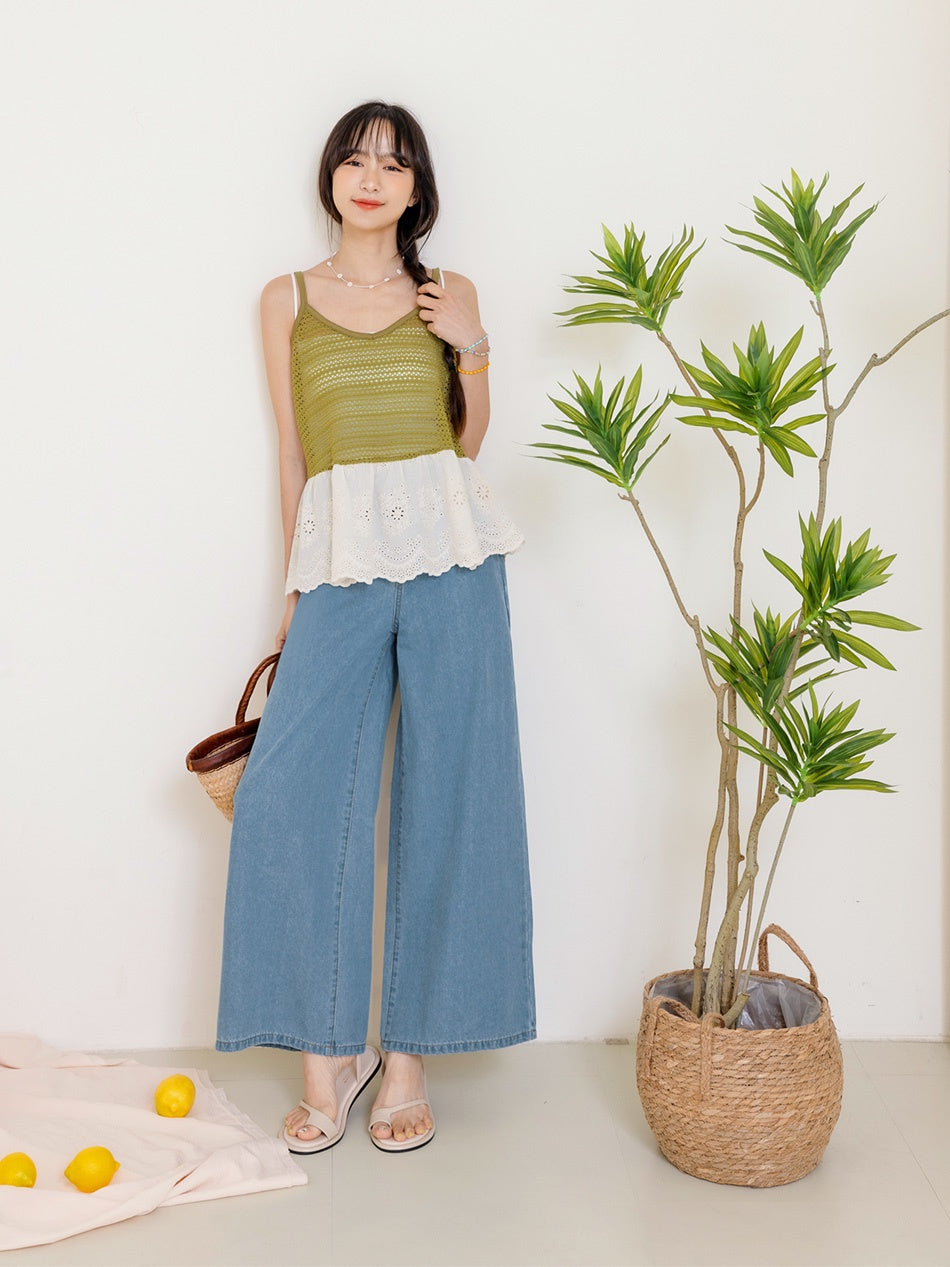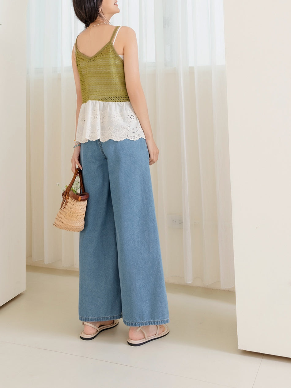 Casual Long Wide Leg Culottes Denim Jeans Pants