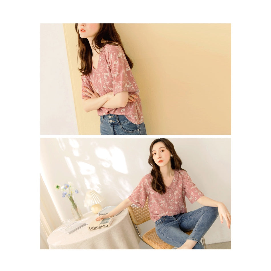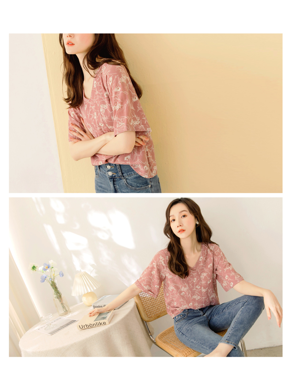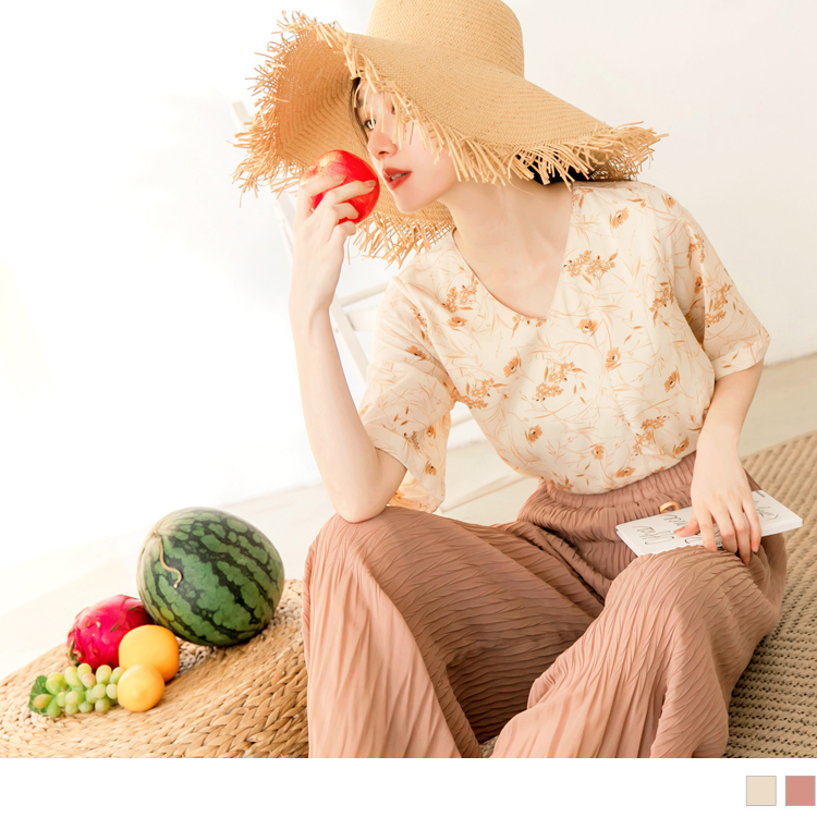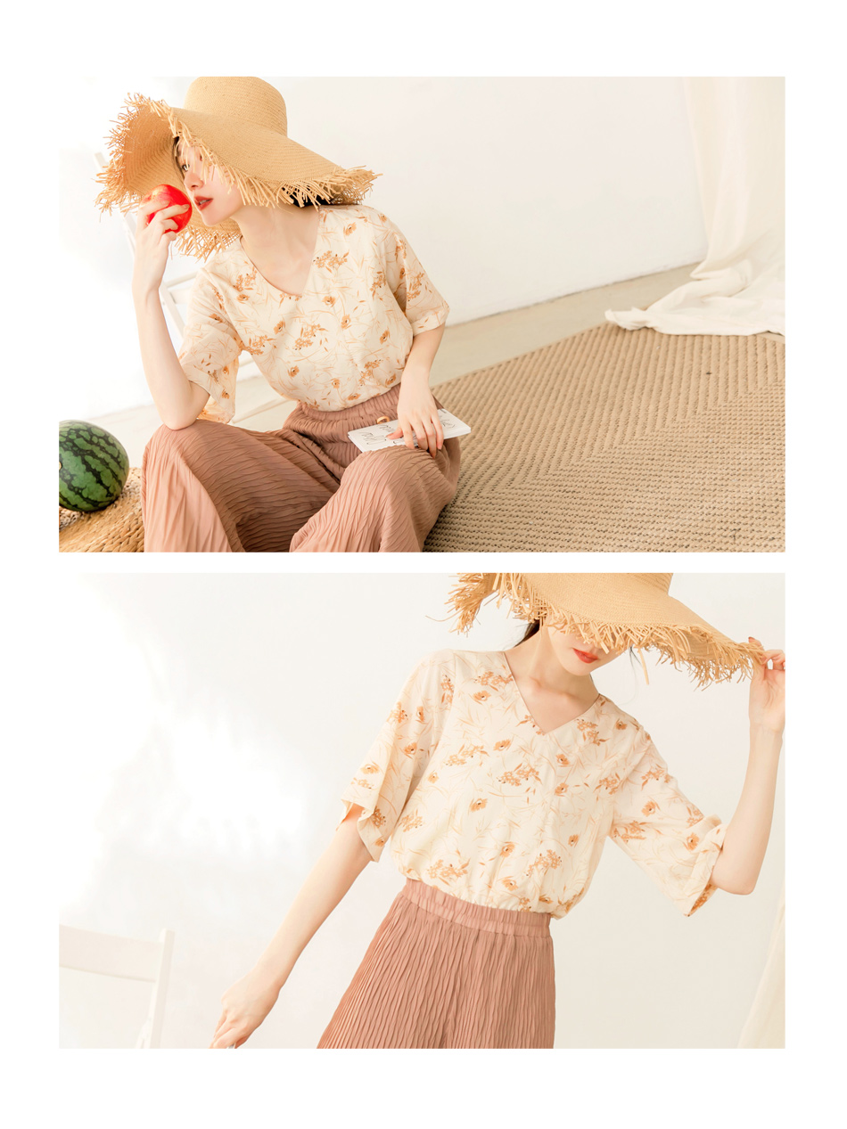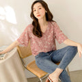 Cool Chiffon Print V-Neck Short Sleeve Top