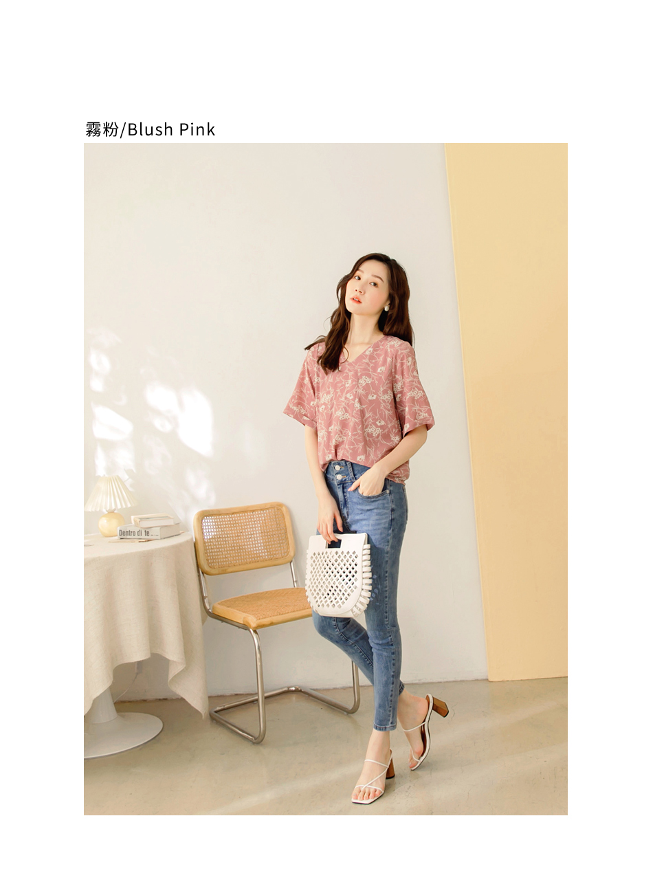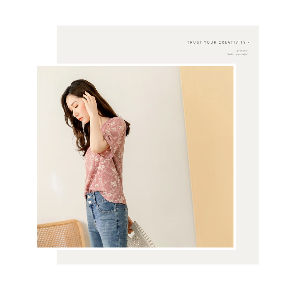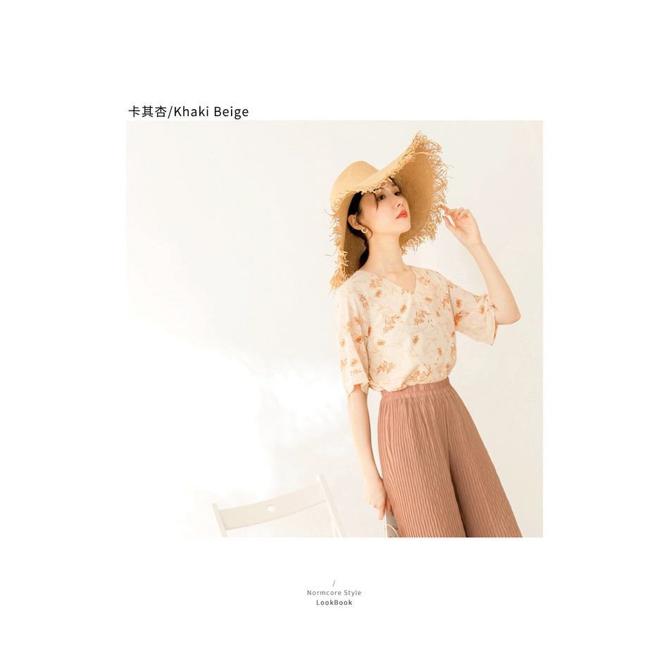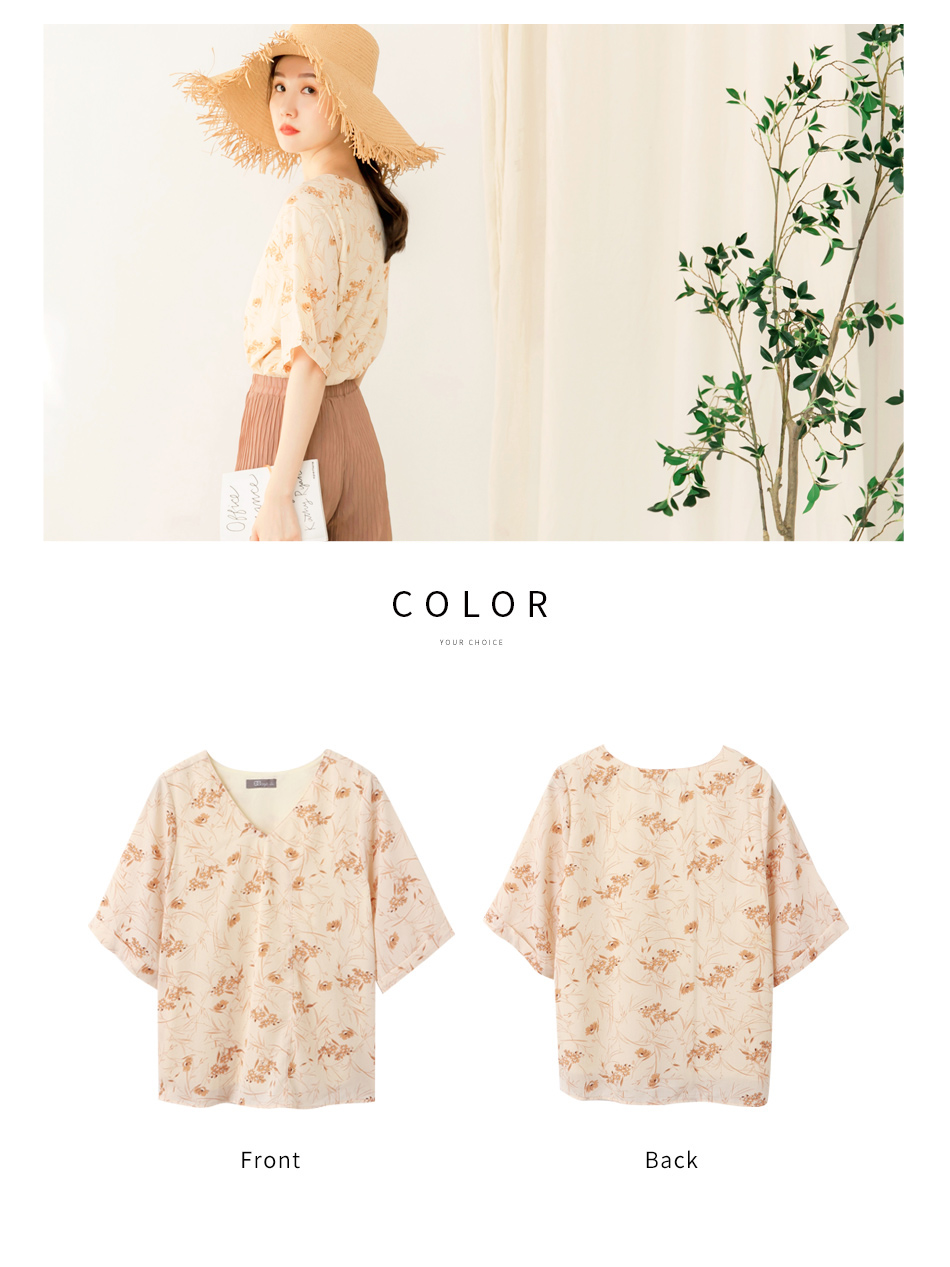 Cool Chiffon Print V-Neck Short Sleeve Top