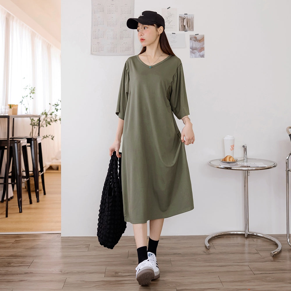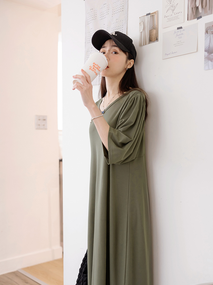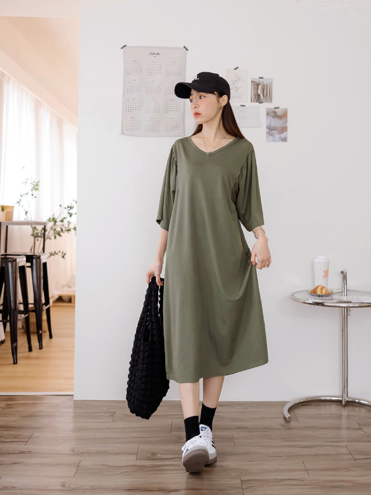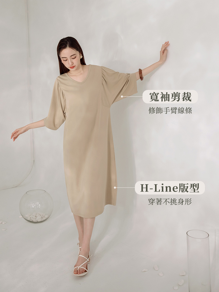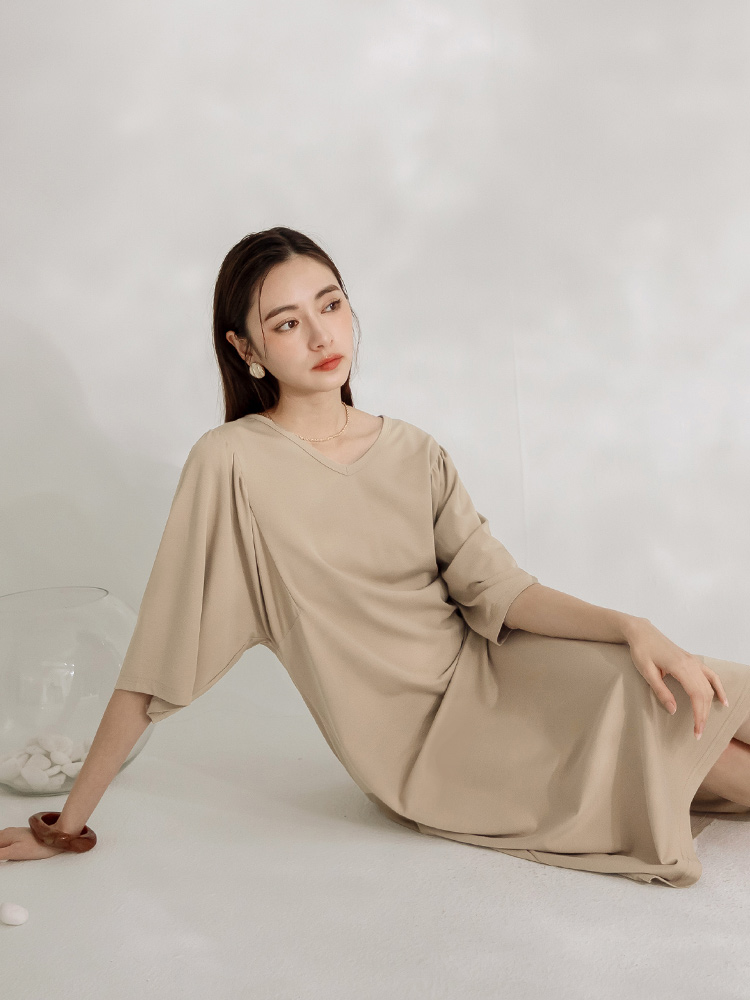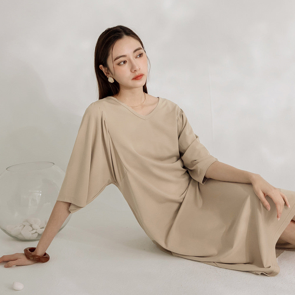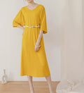 Cooling Wide Sleeve V-Neck Loose Midi Summer Dress