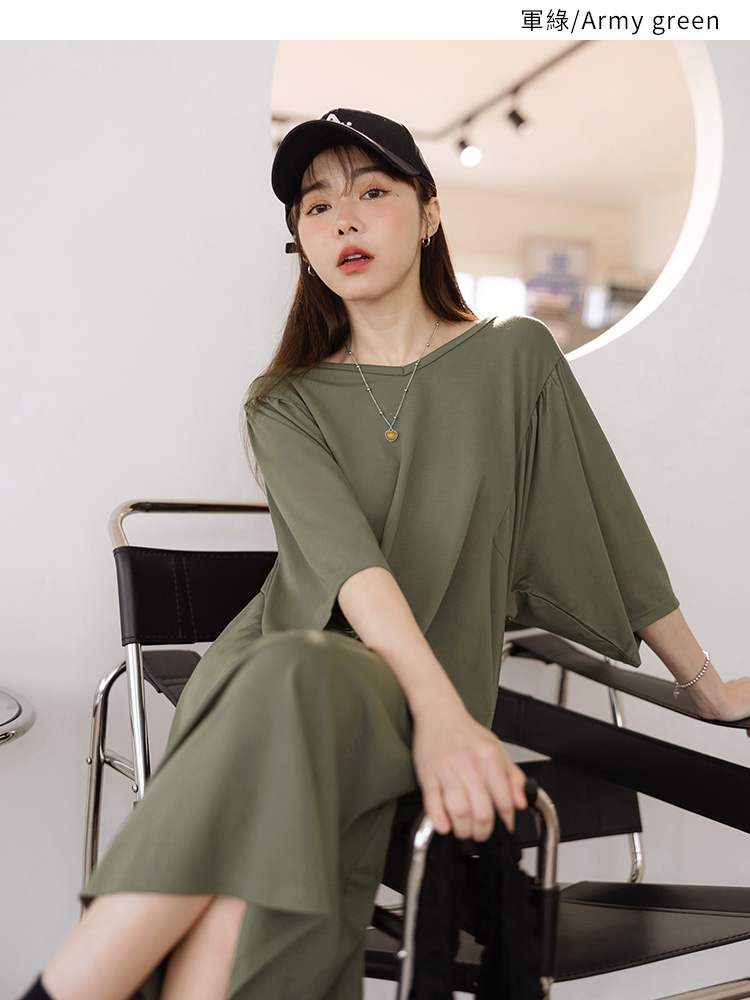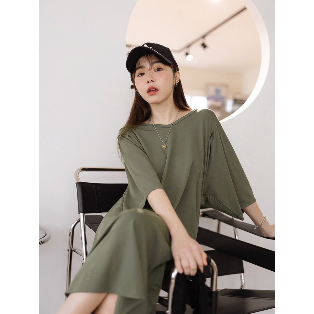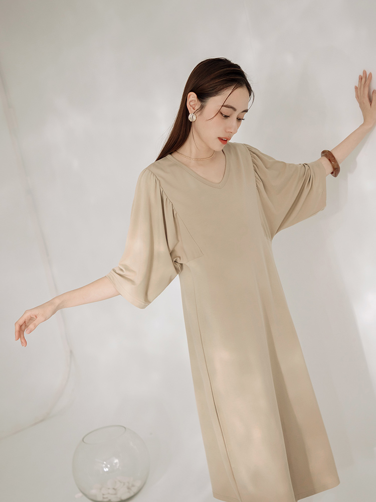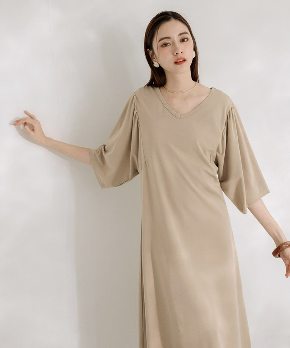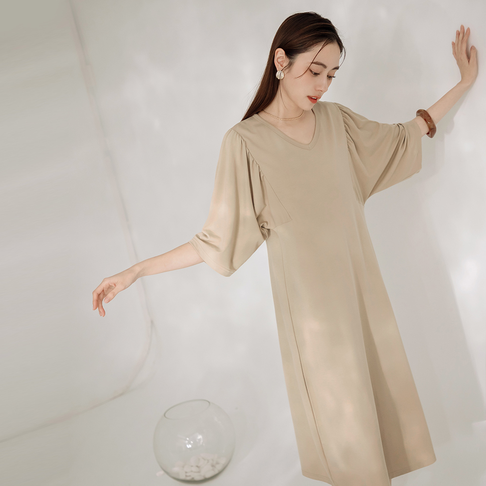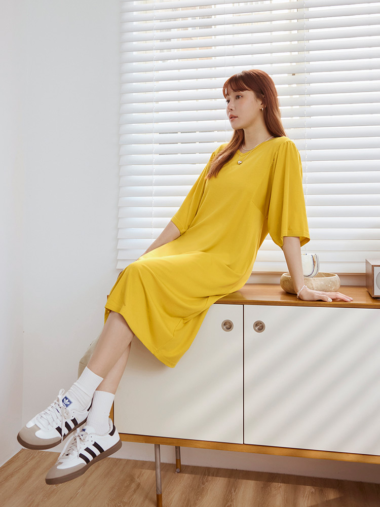 Cooling Wide Sleeve V-Neck Loose Midi Summer Dress