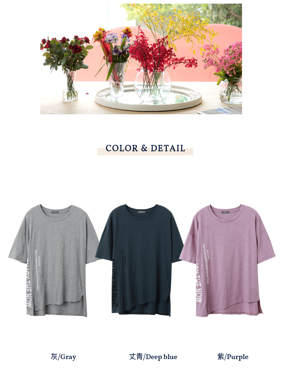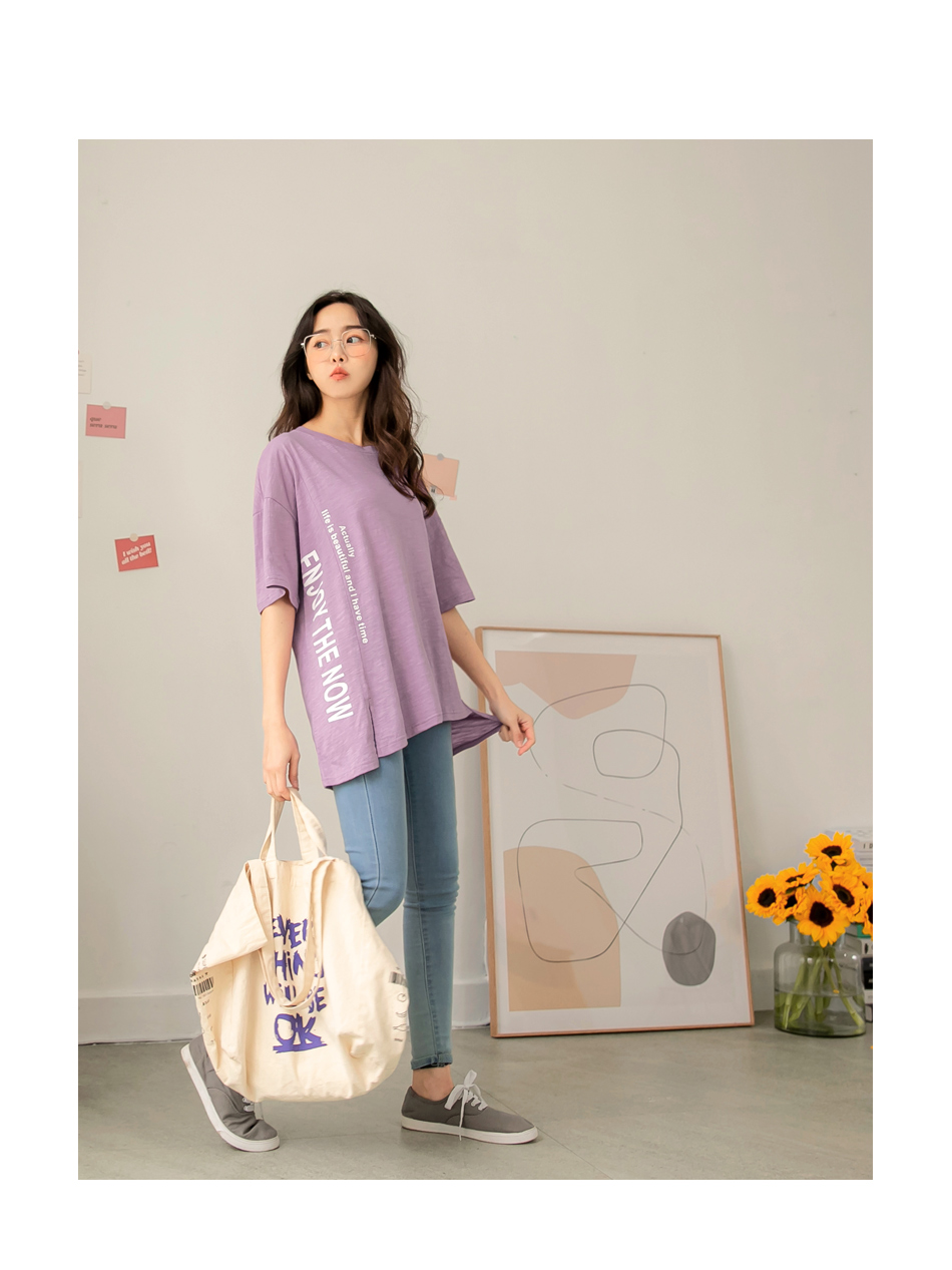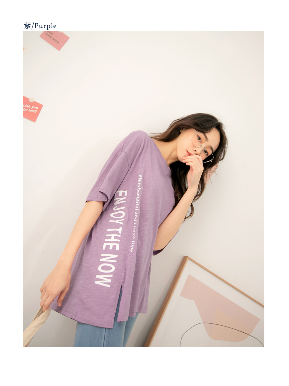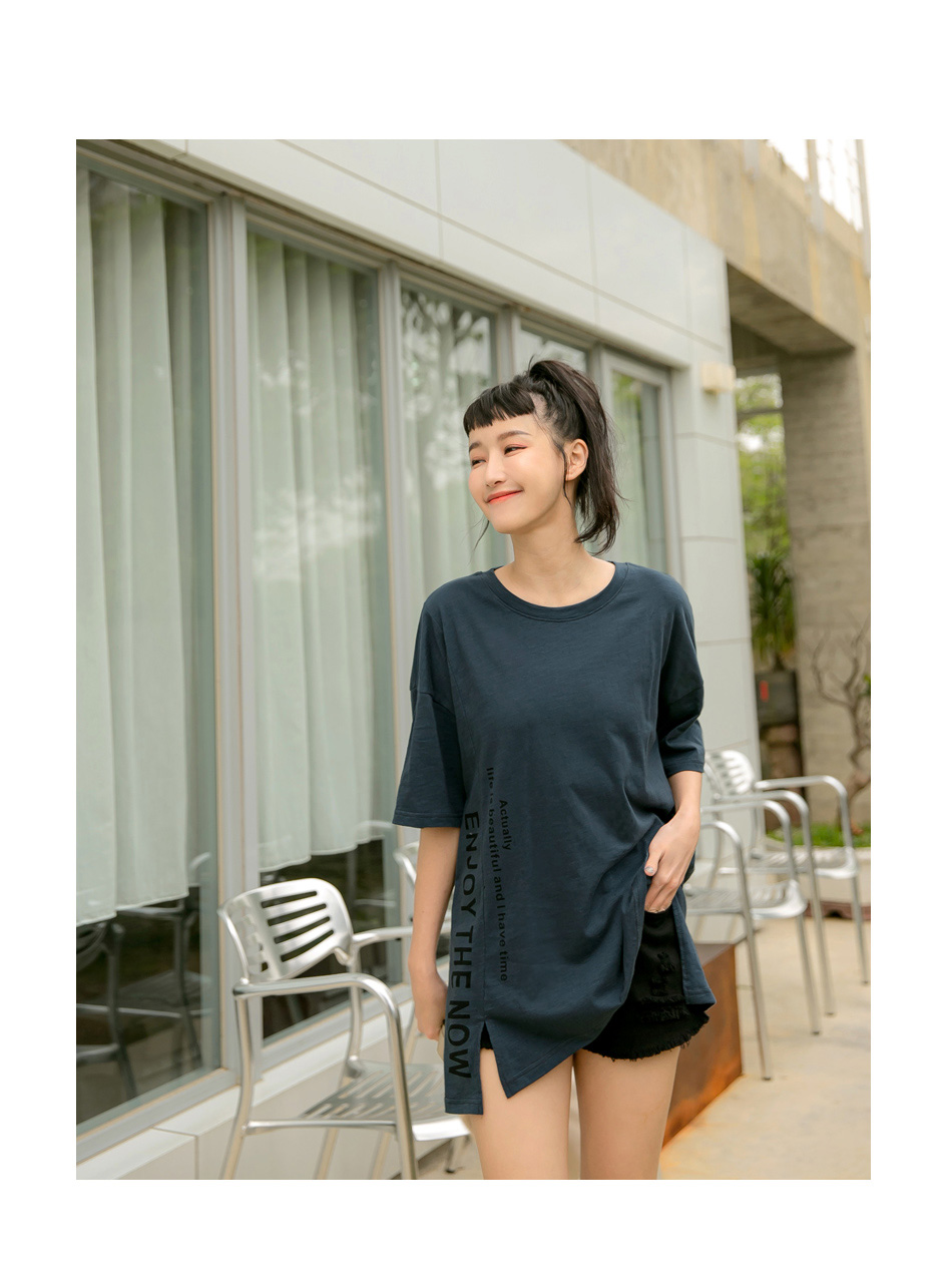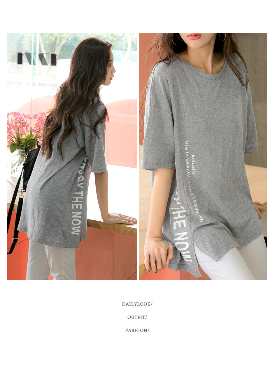 Cotton Letter Print Slit Short Sleeve Top