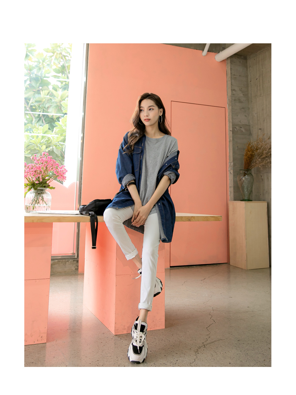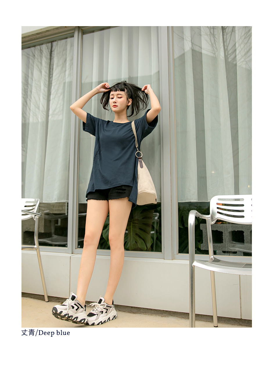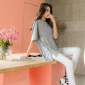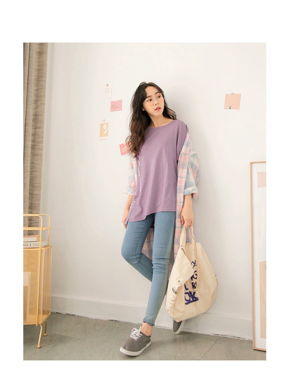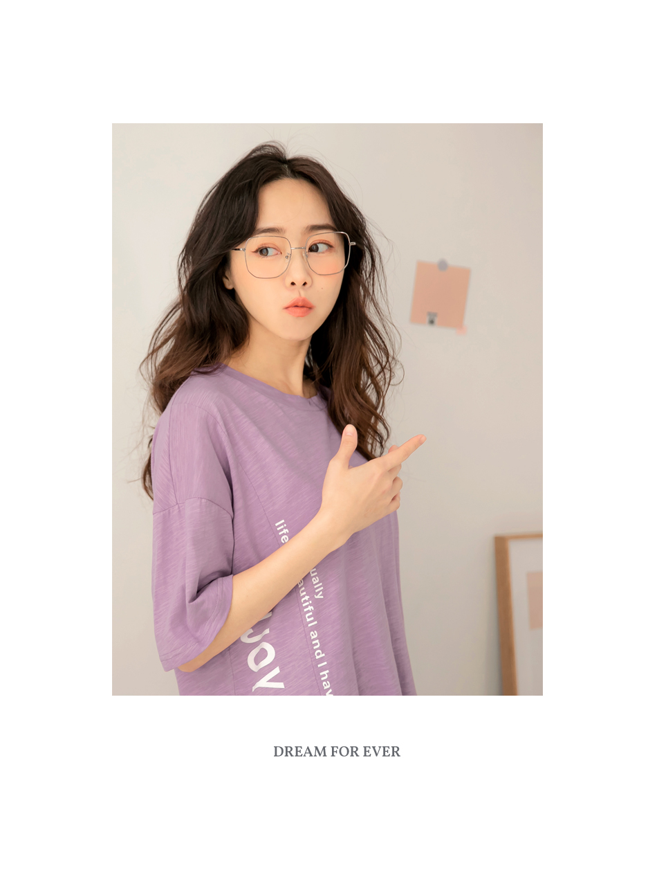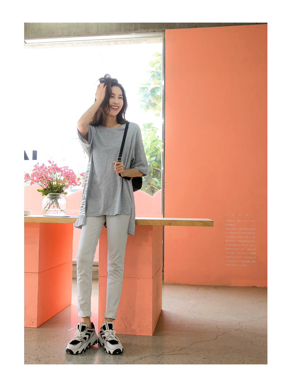 Cotton Letter Print Slit Short Sleeve Top