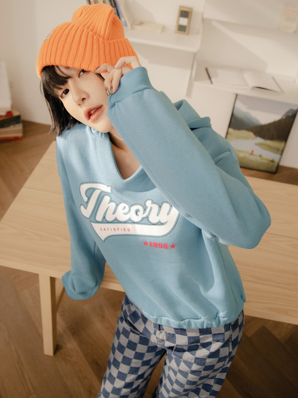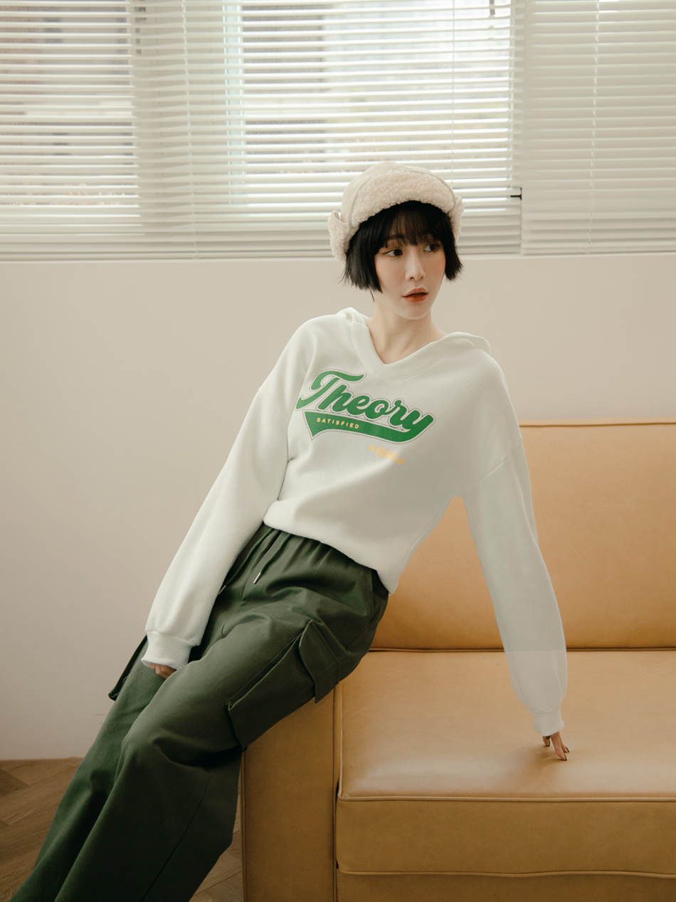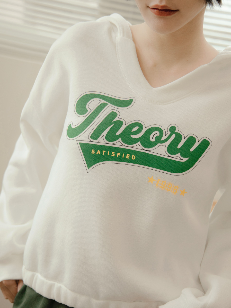 Cropped V-Neck Printed Hooded Sweatshirt Top