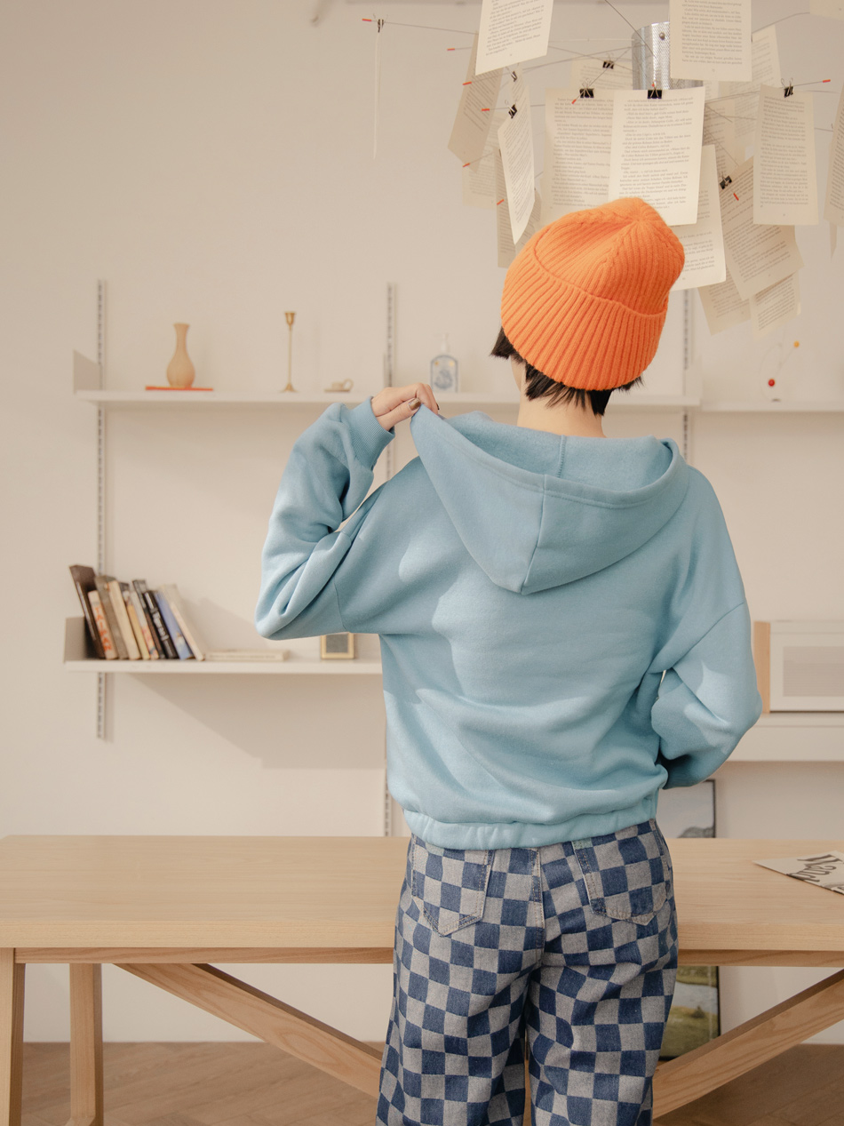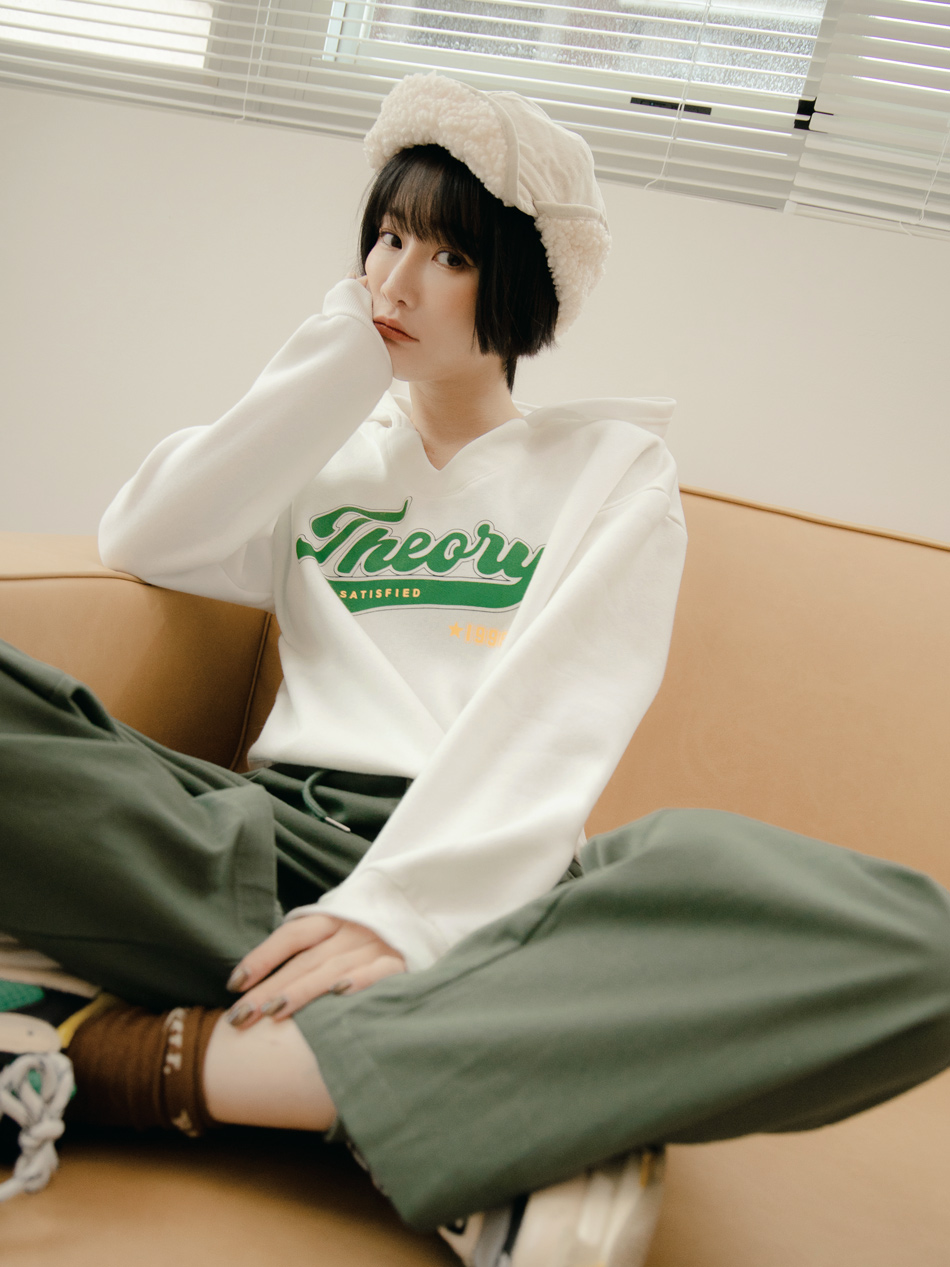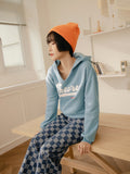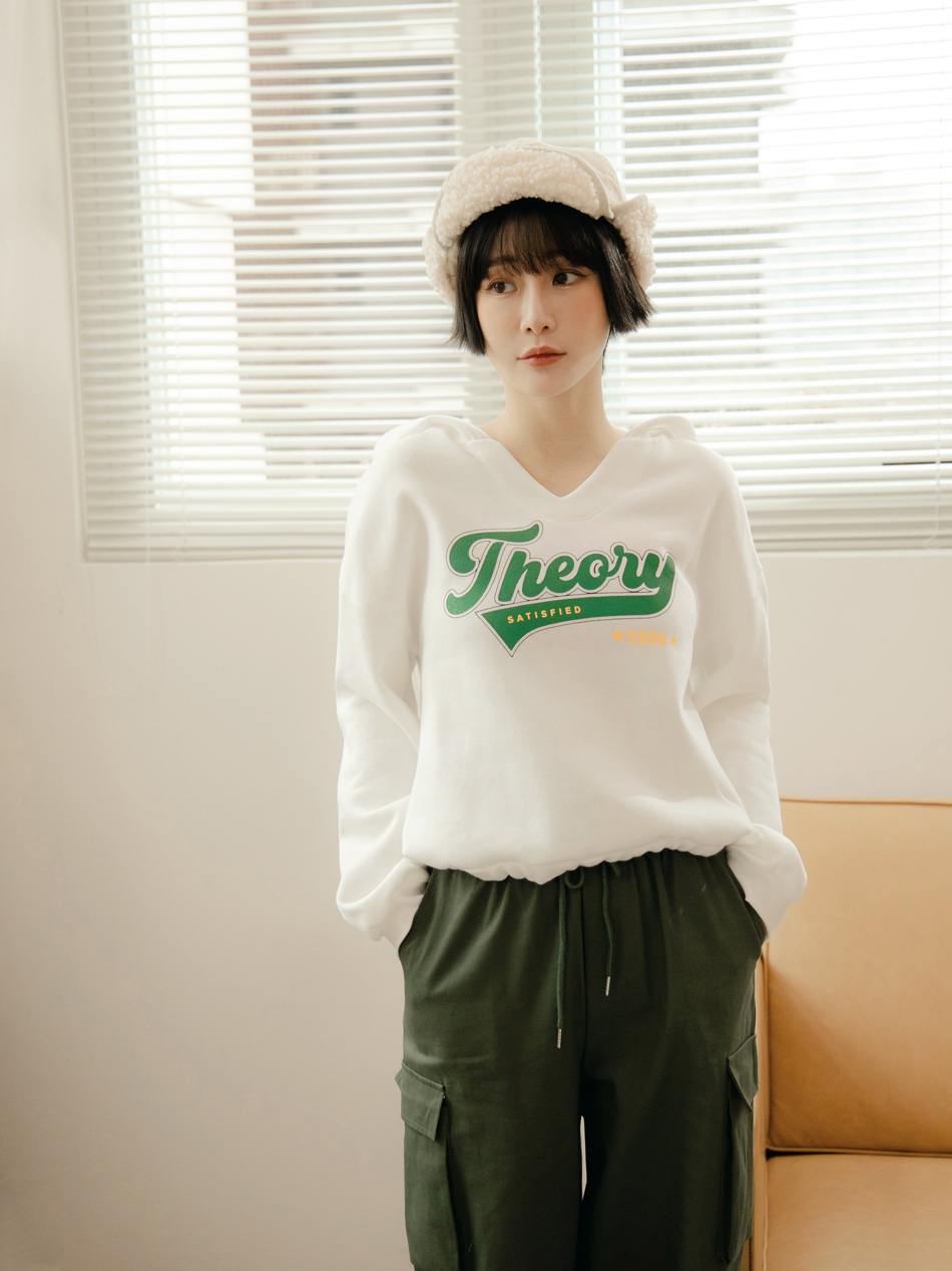 Cropped V-Neck Printed Hooded Sweatshirt Top