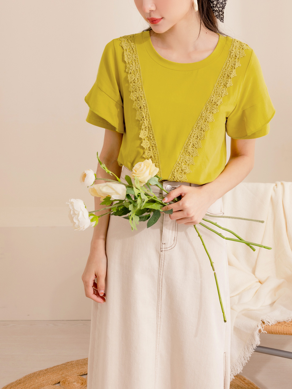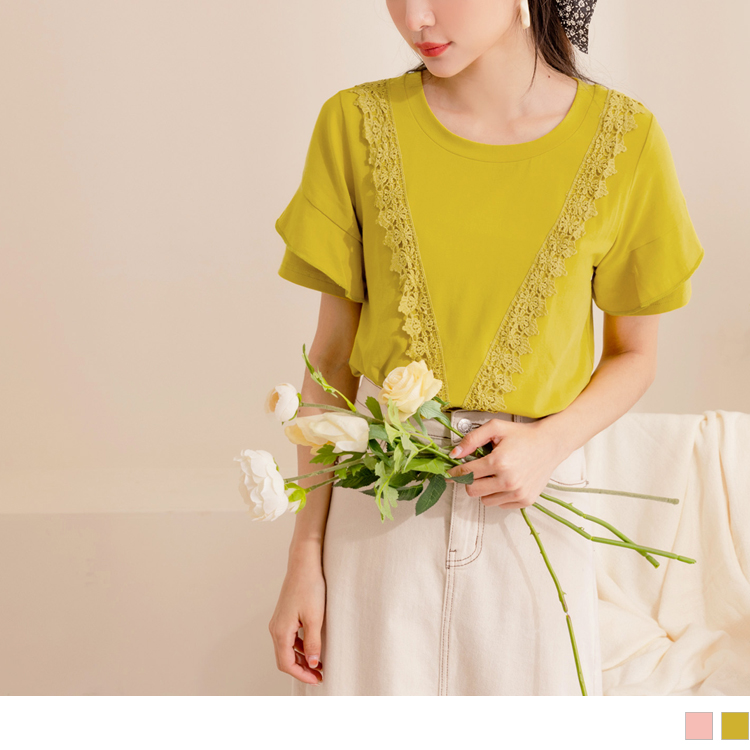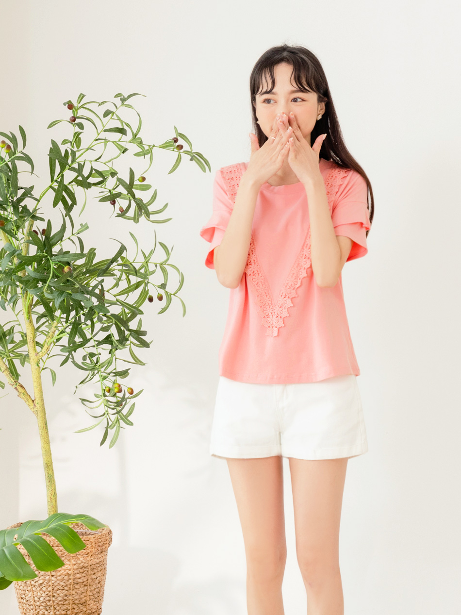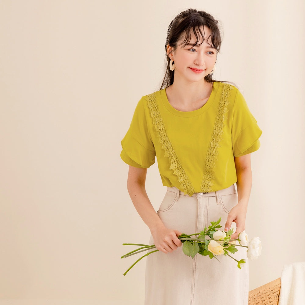 Eyelet Lace Ruffle Short Sleeve Top