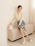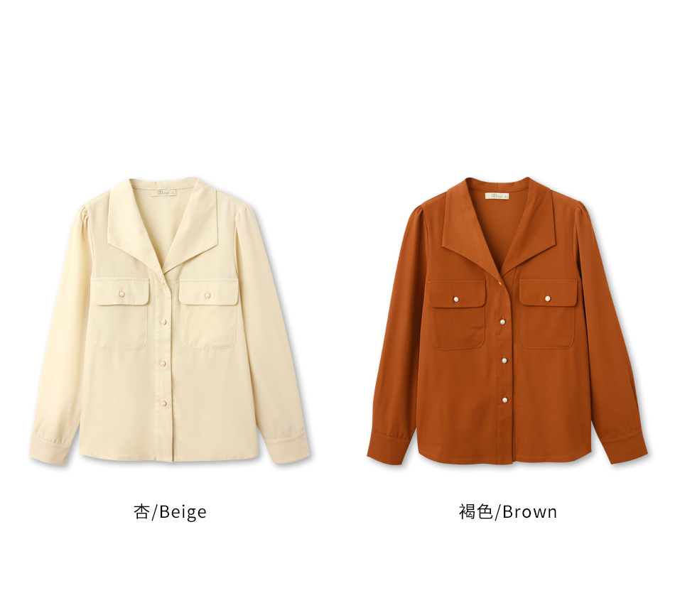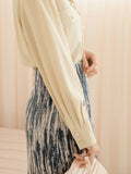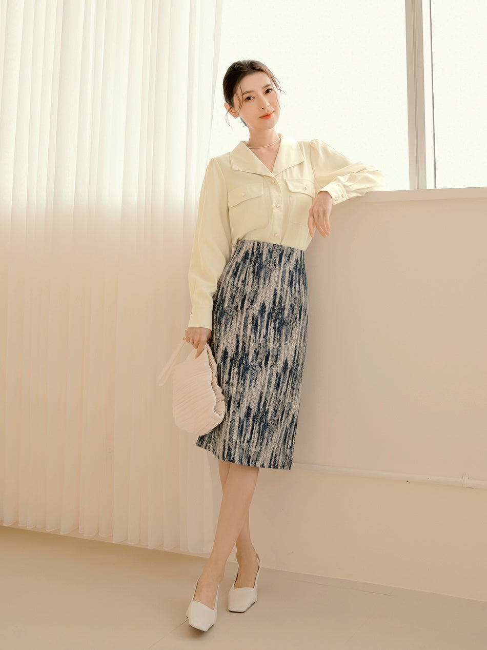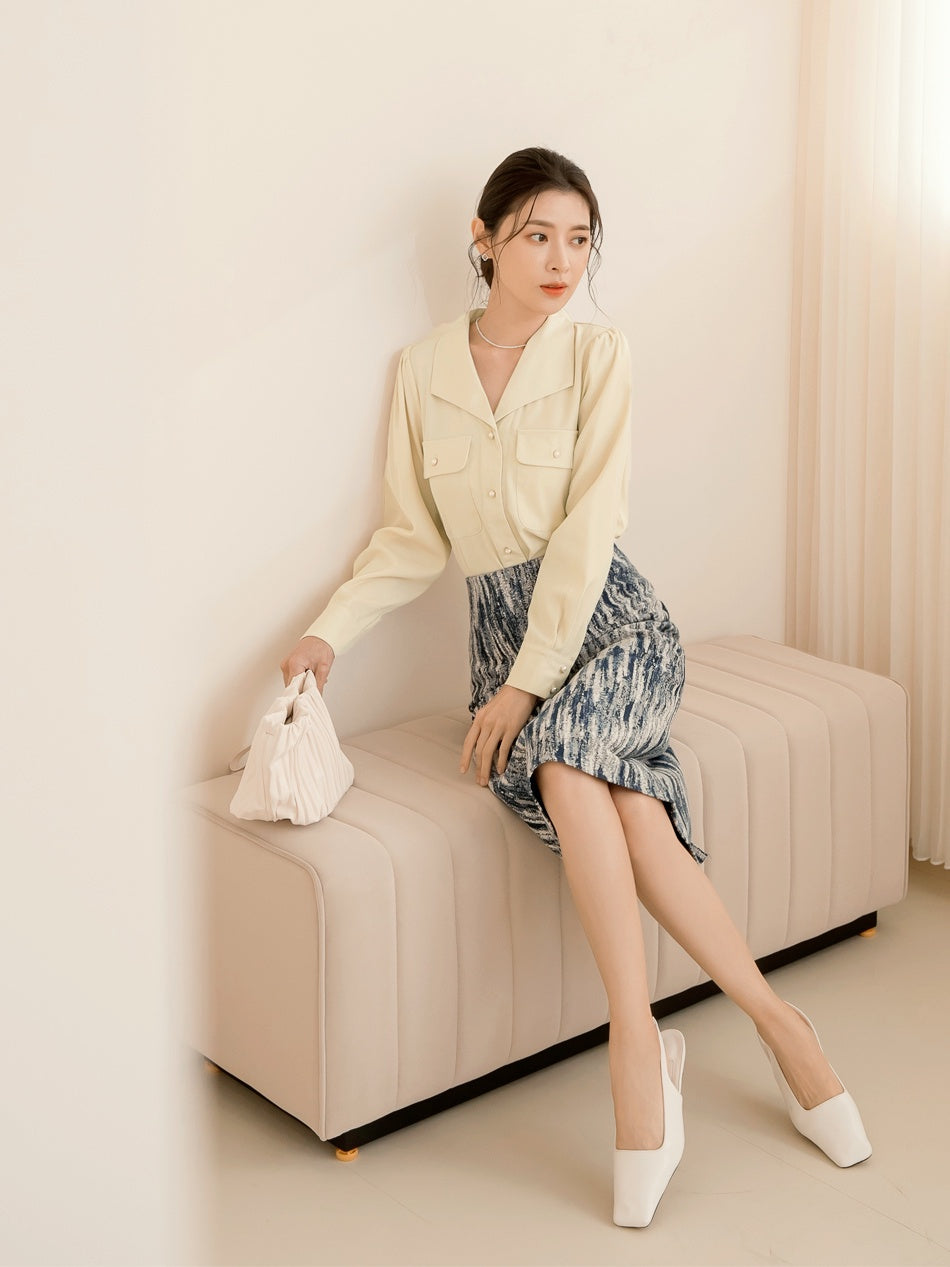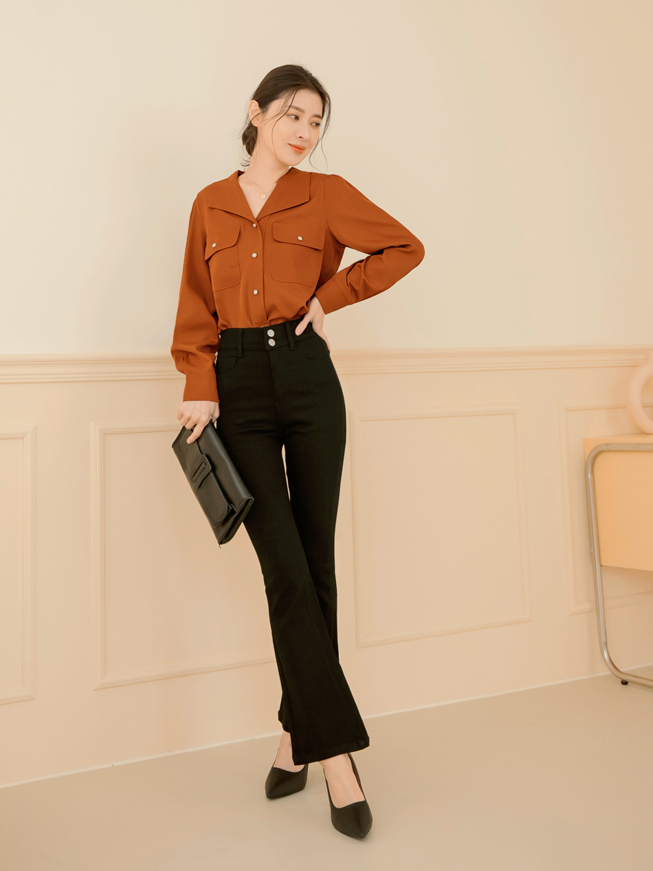 French Pearl Button Pocket Pleated Sleeve Chiffon Top