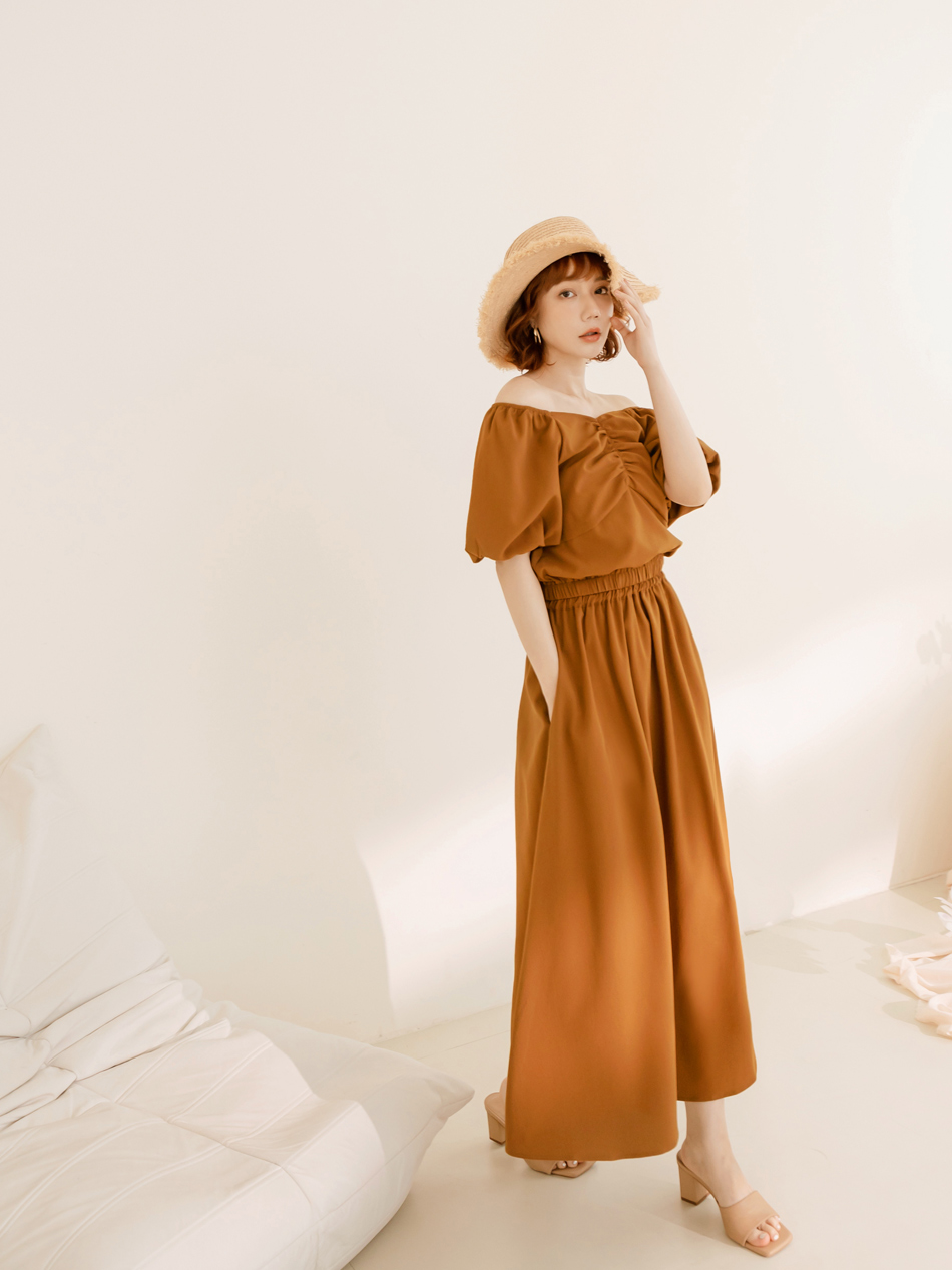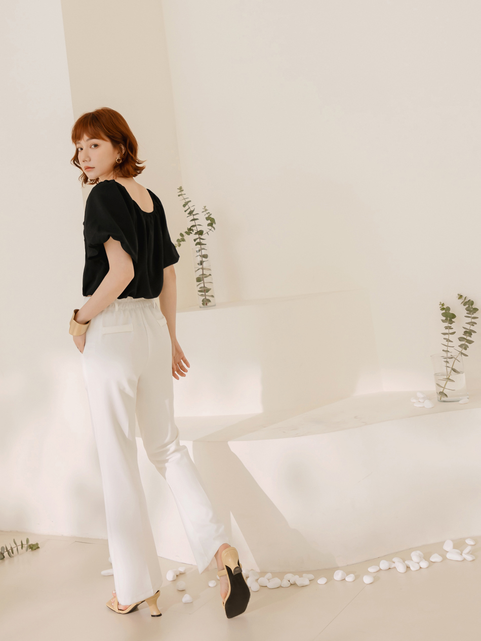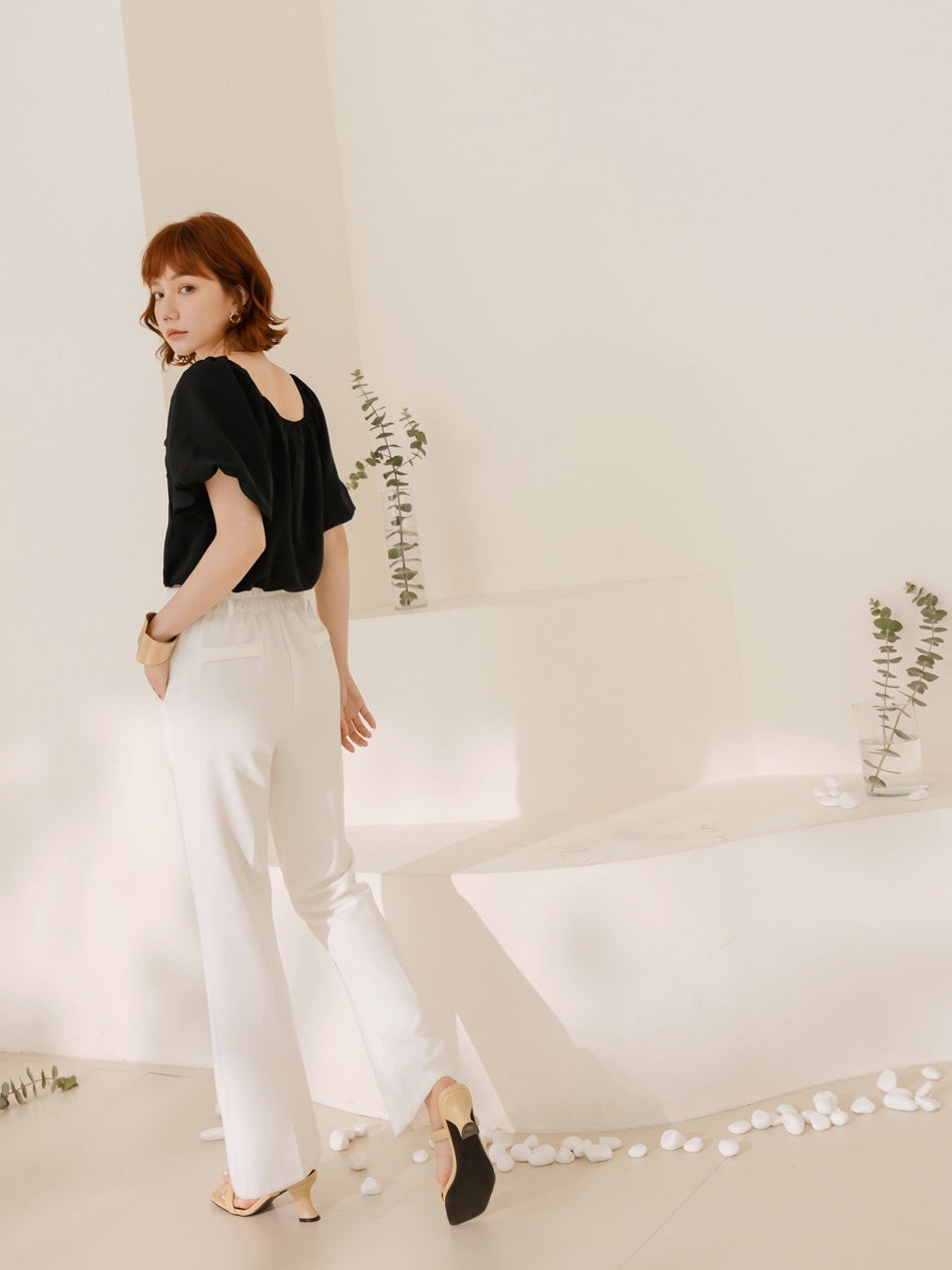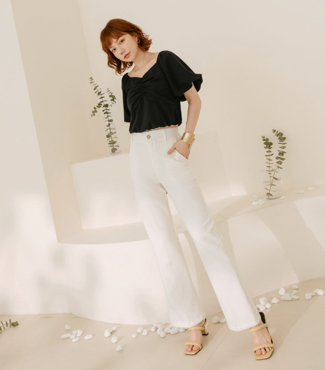 Korean Wrinkle Free Ruched Crop Puff Sleeve Blouse Top