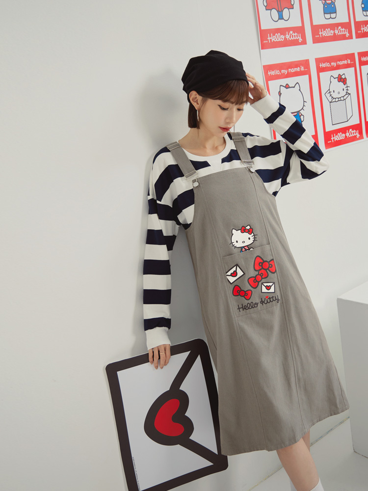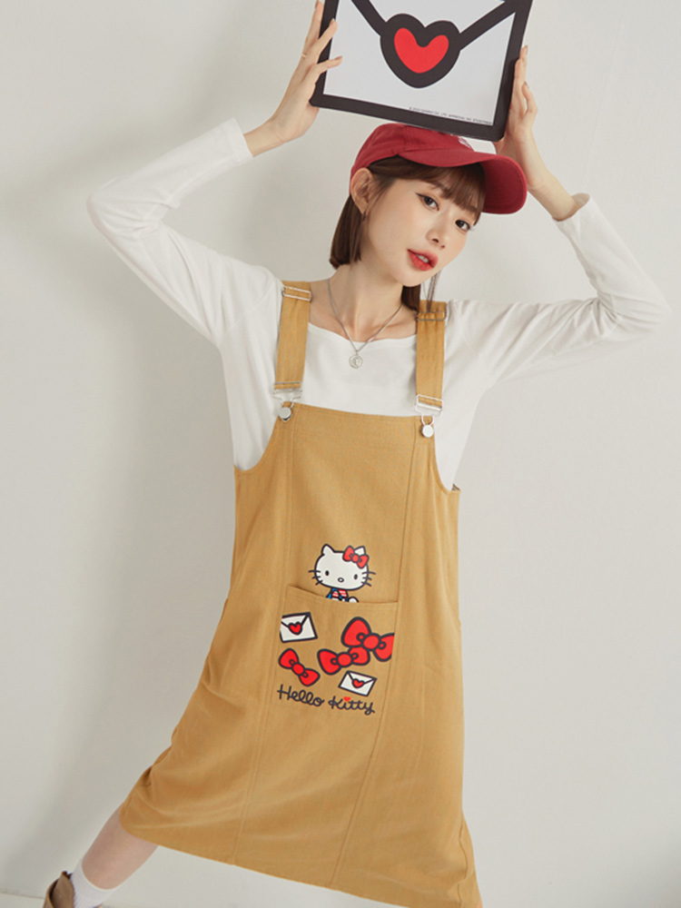 HELLO KITTY Trendy Classic Pocket Print Suspender Dress