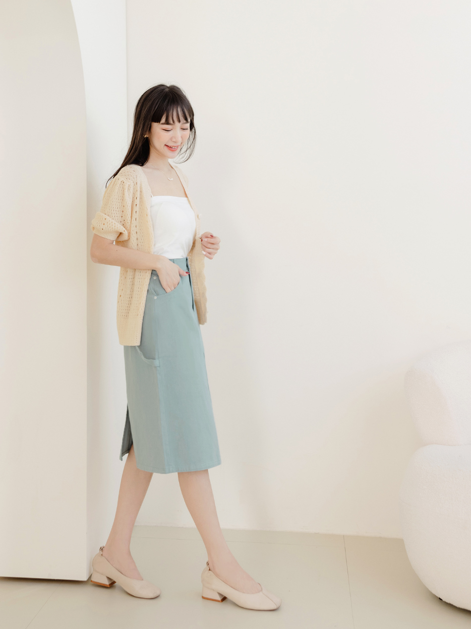 BACK SPLIT A-LINE KNEE LENGTH SKIRTS