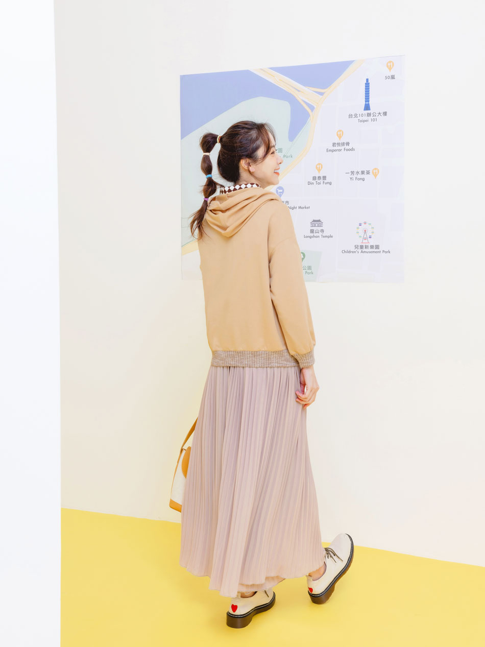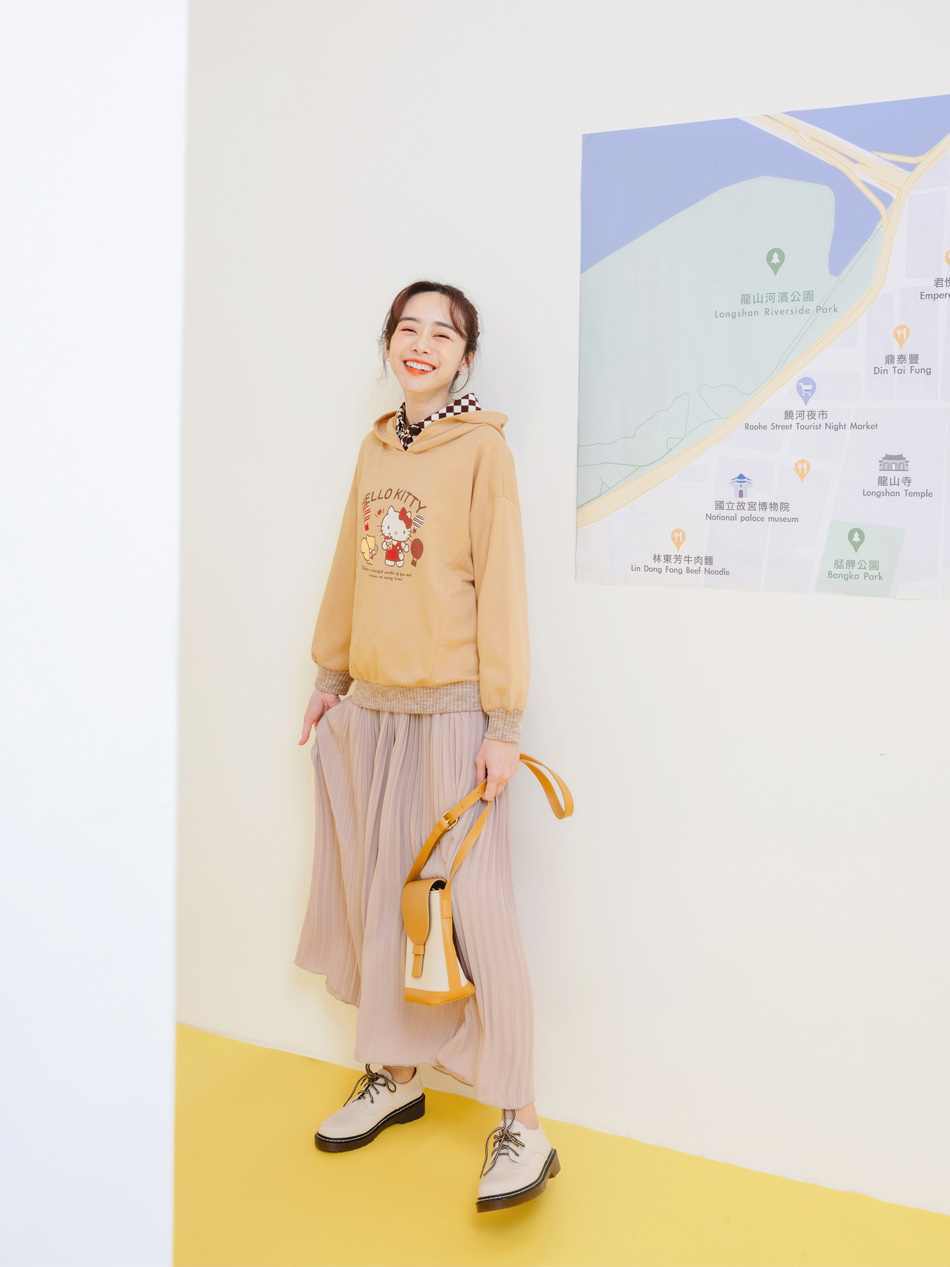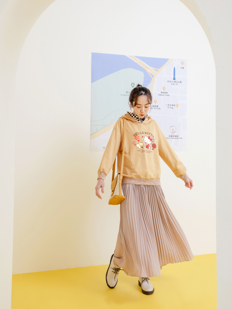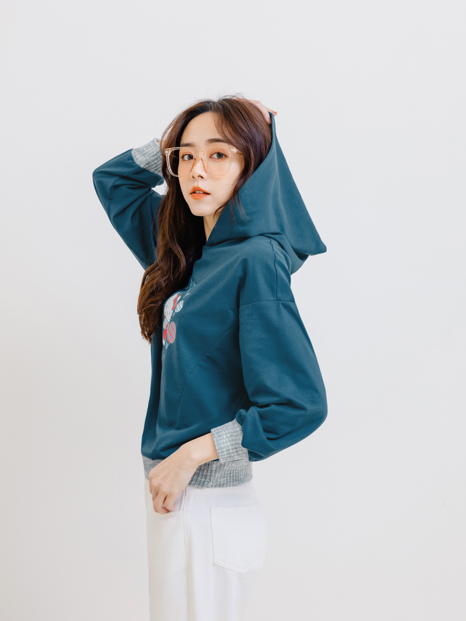 KITTY PRINTED RIB LONG SLEEVE HOODED TOPS
