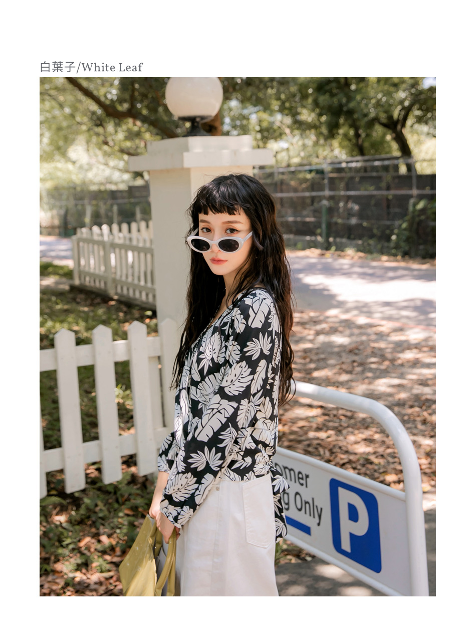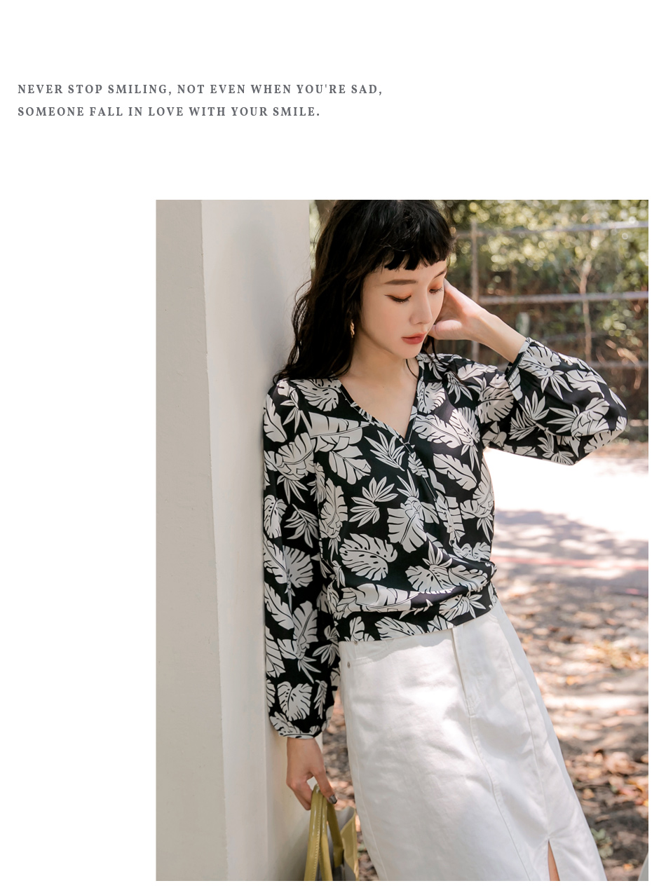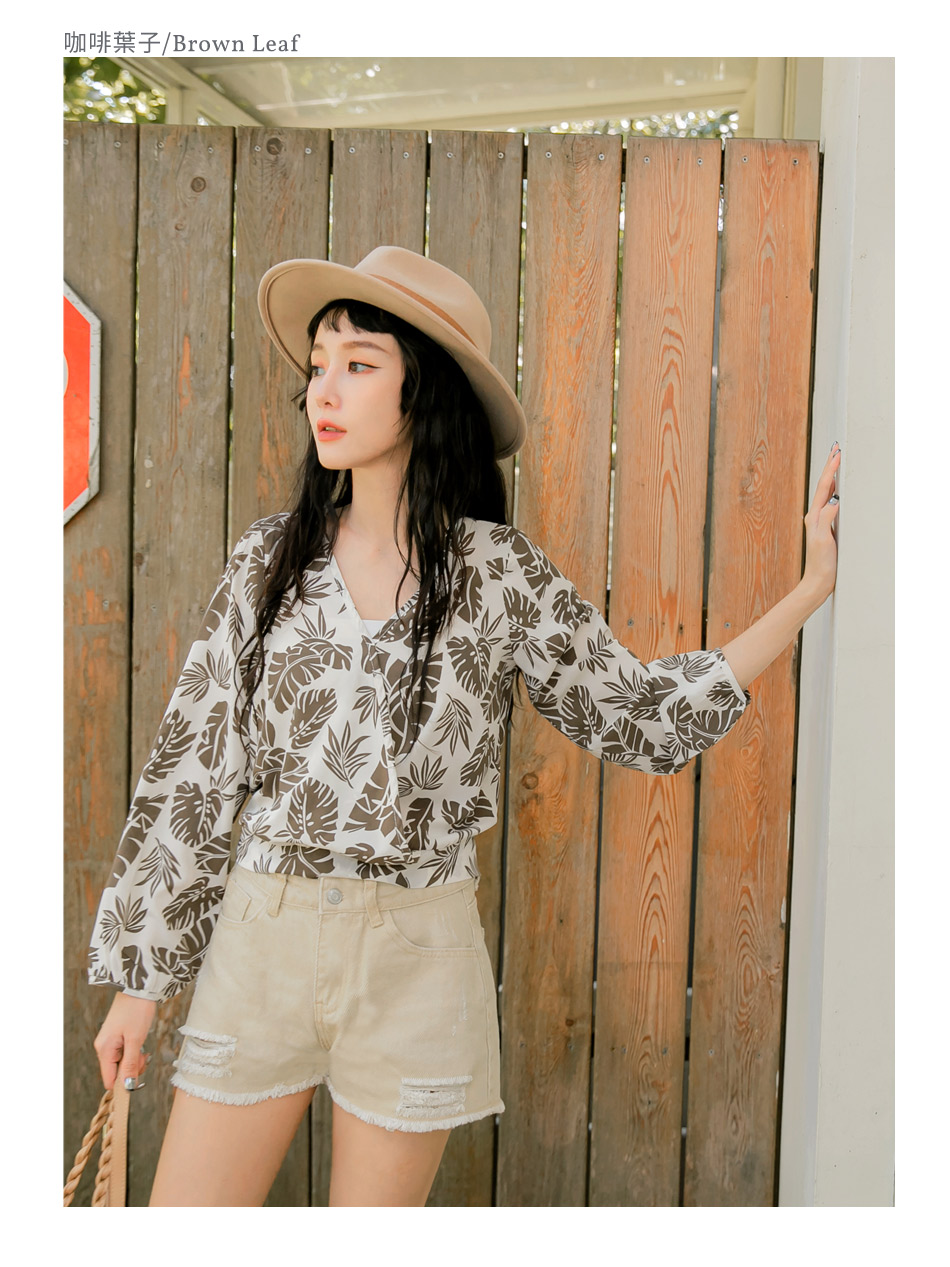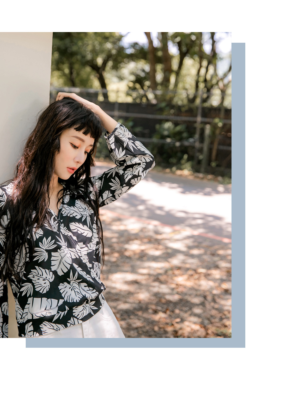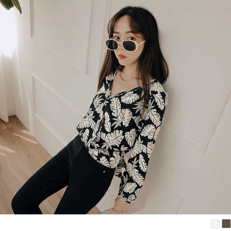 ORANGEBEAR LEAF PRINTED LONG SLEEVE TOPS
