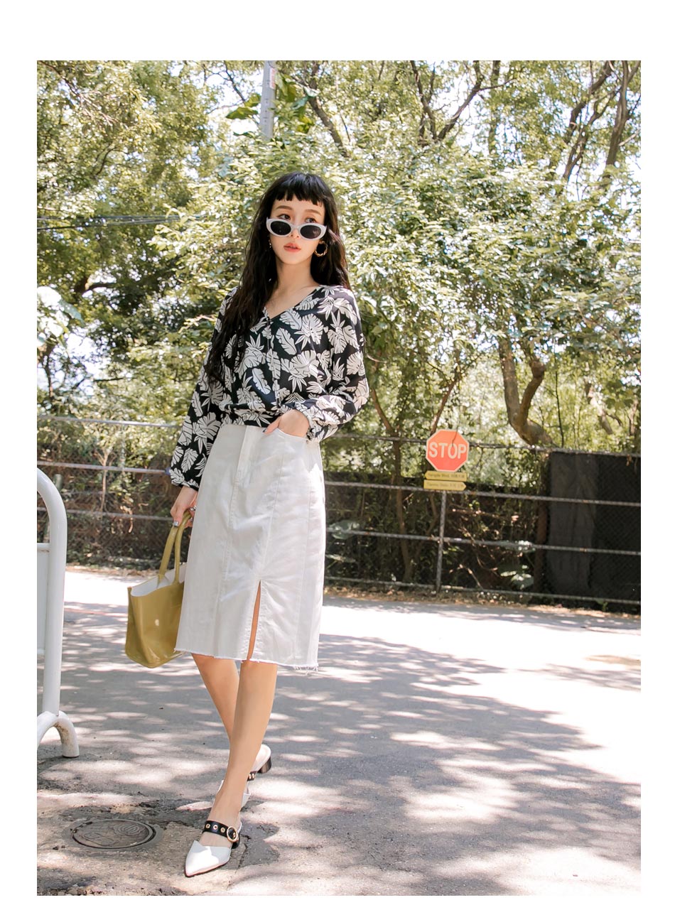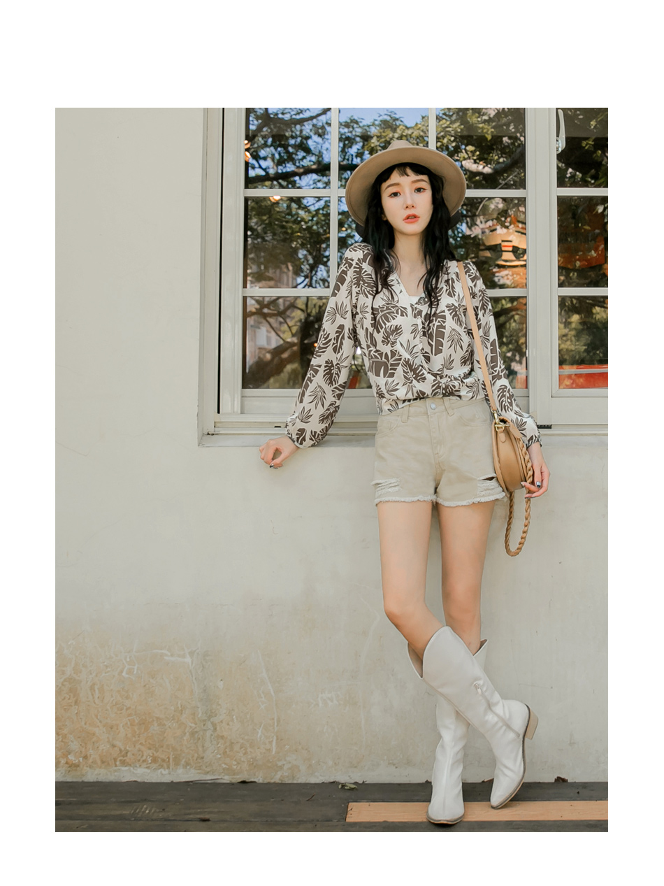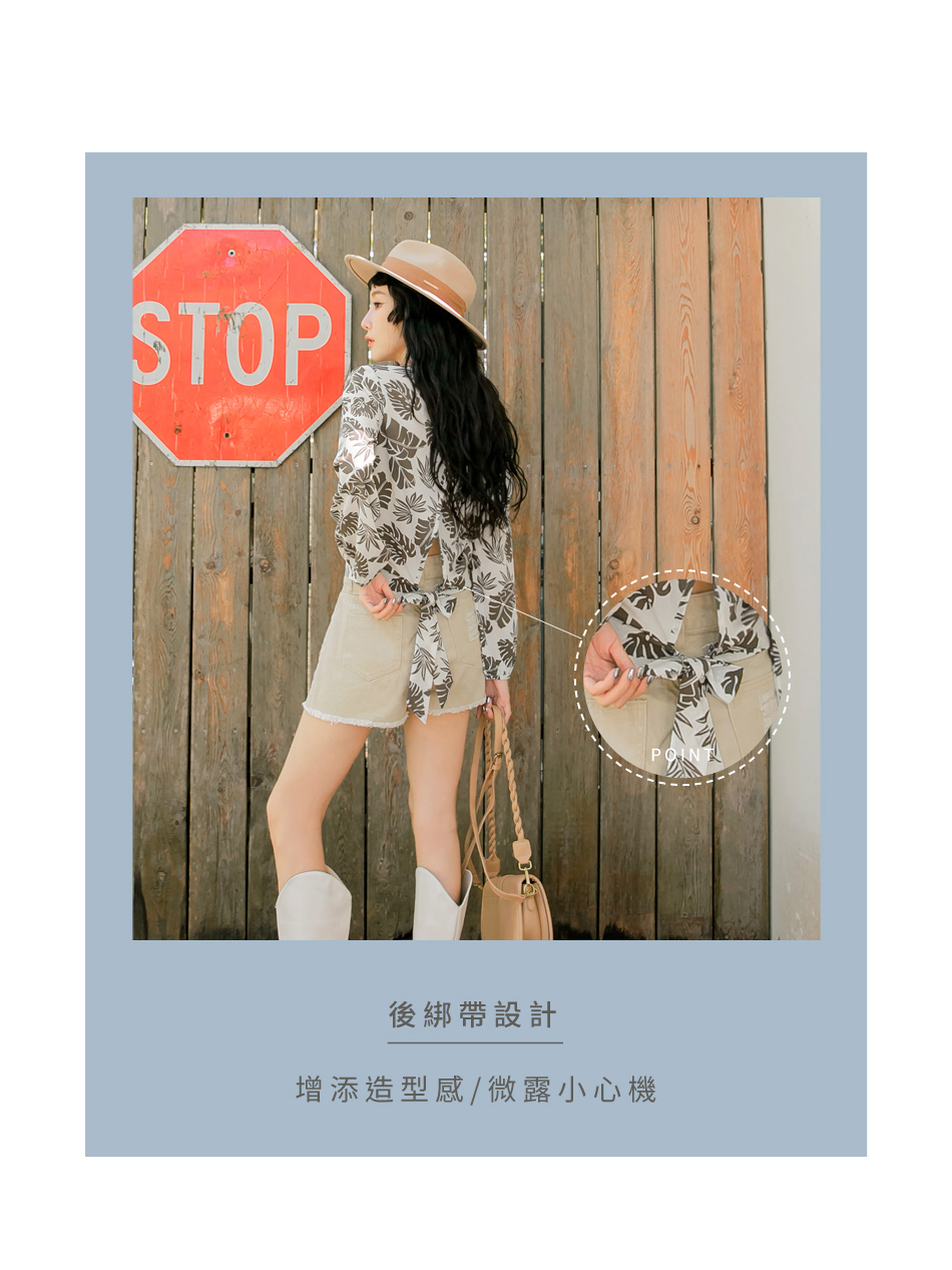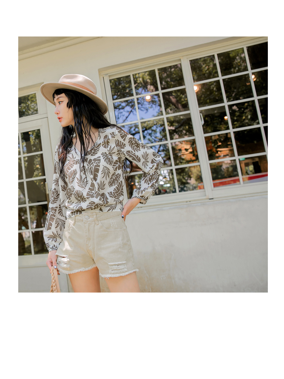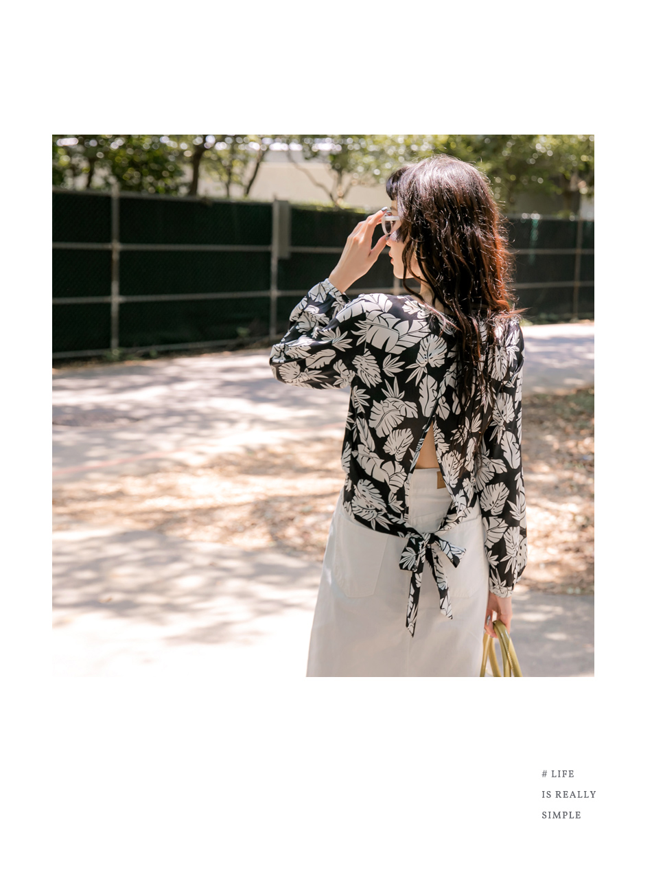 ORANGEBEAR LEAF PRINTED LONG SLEEVE TOPS