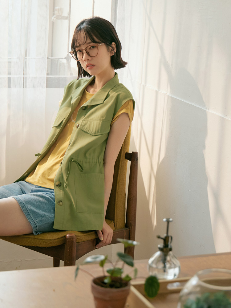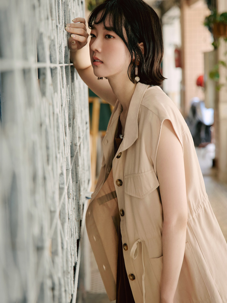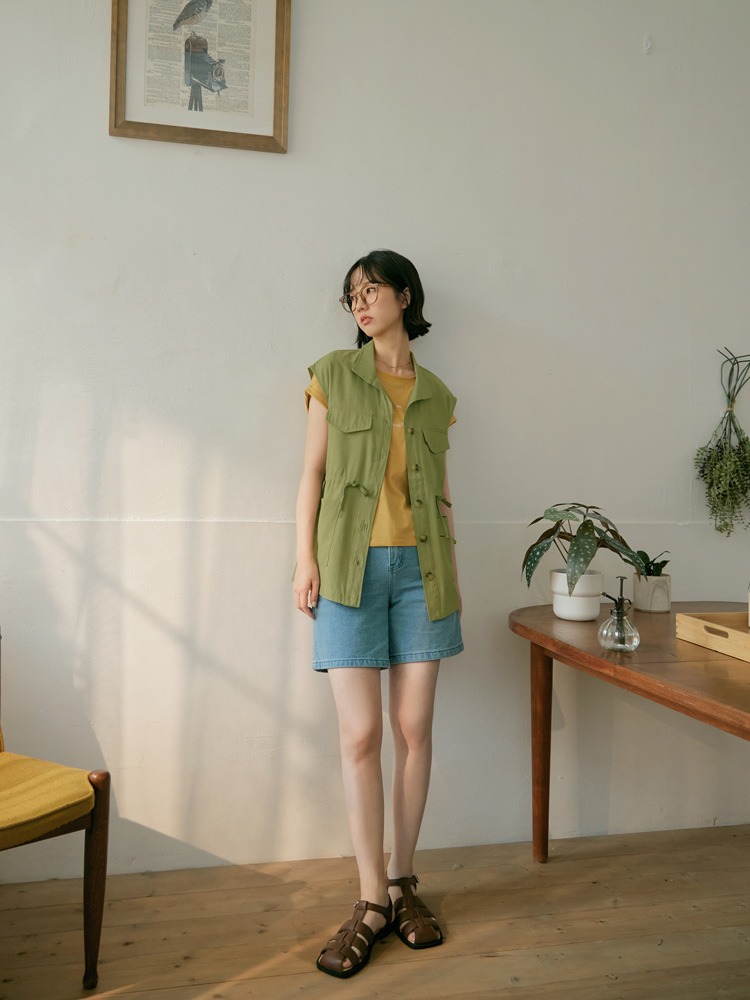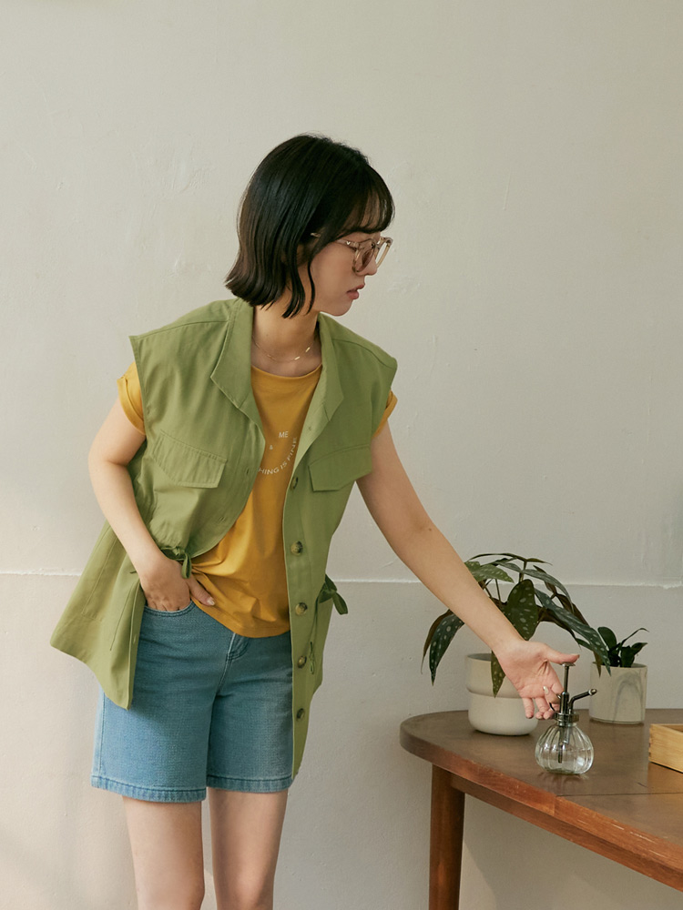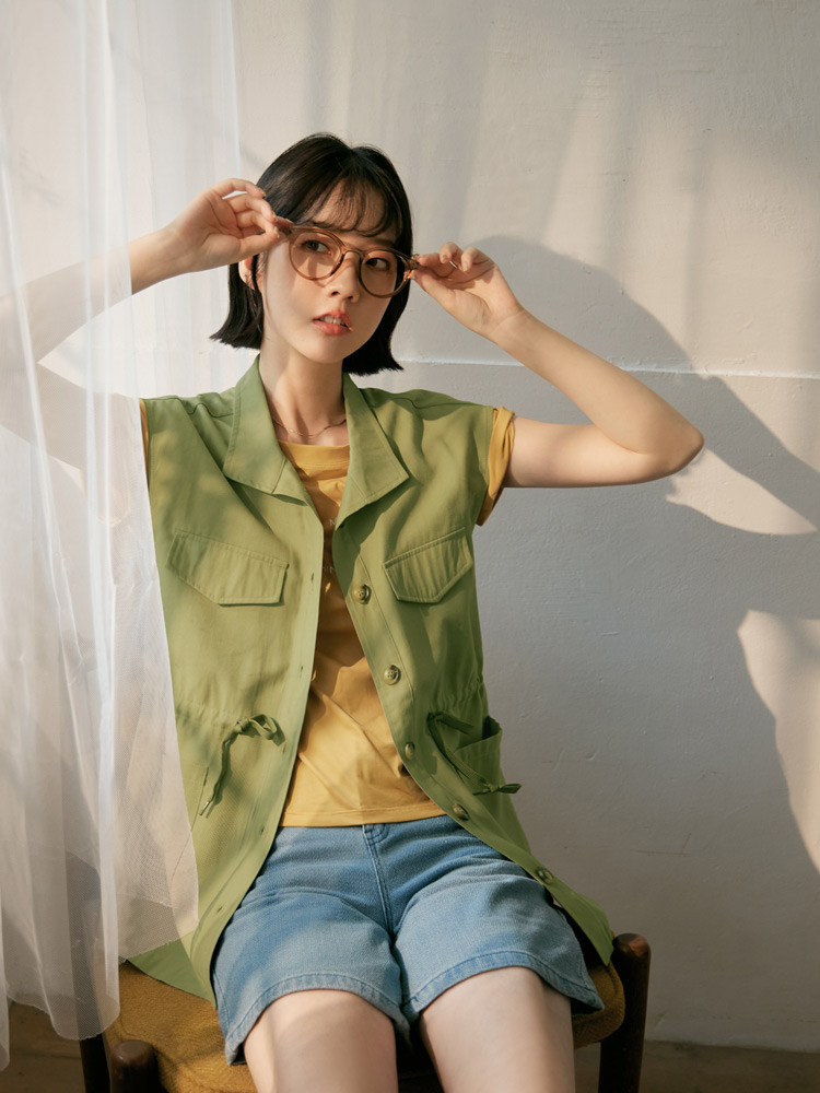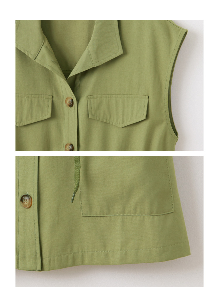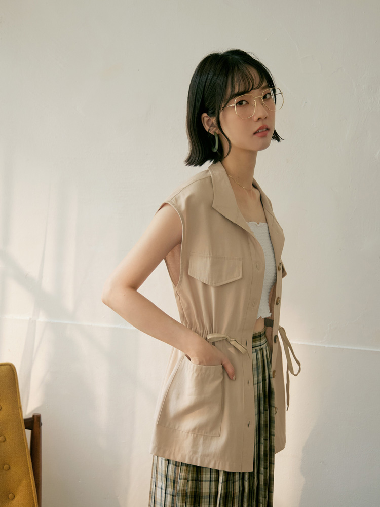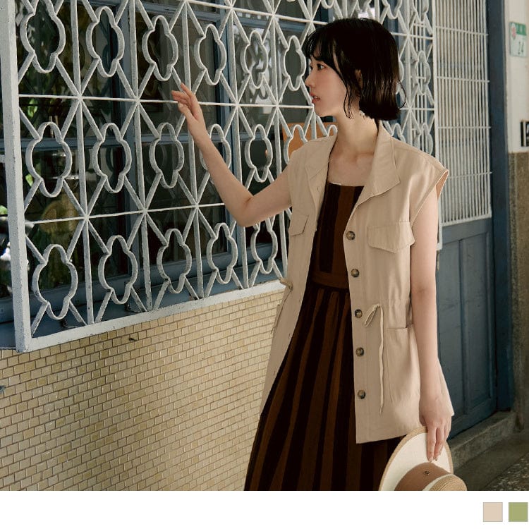 SLEEVELESS DRAWSTRING WAIST LONGLINE VEST TOPS