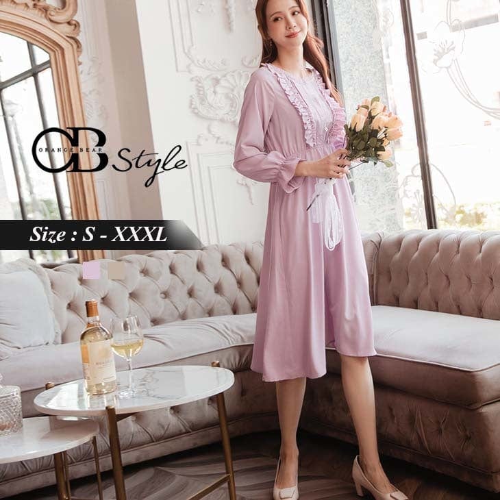 RUFFLE DESIGN ELASTIC WAIST TUNIC LONG SLEEVE DRESS