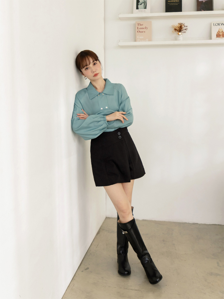 Two-Way Collar Double Button Top