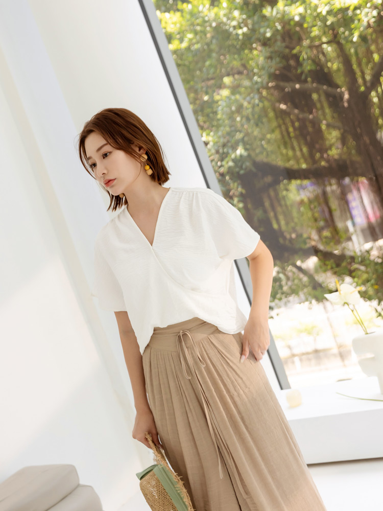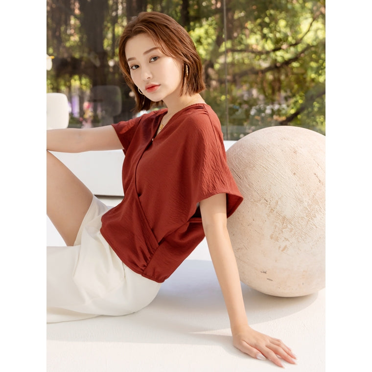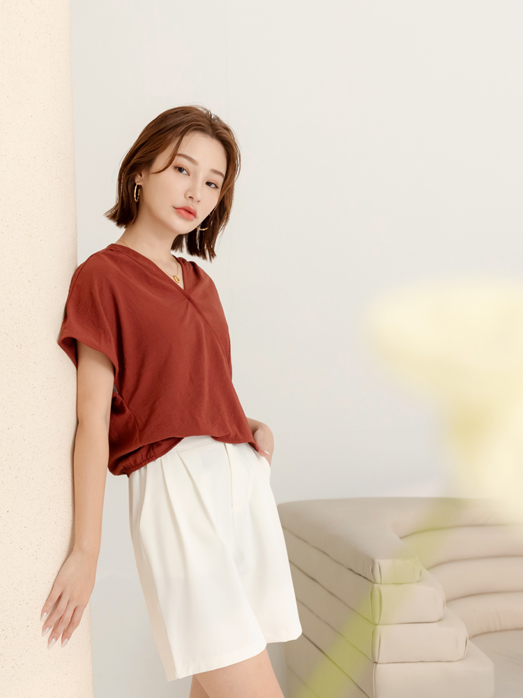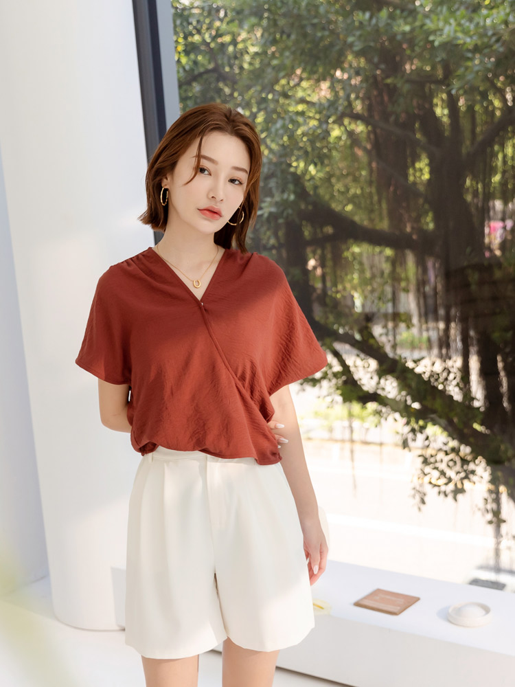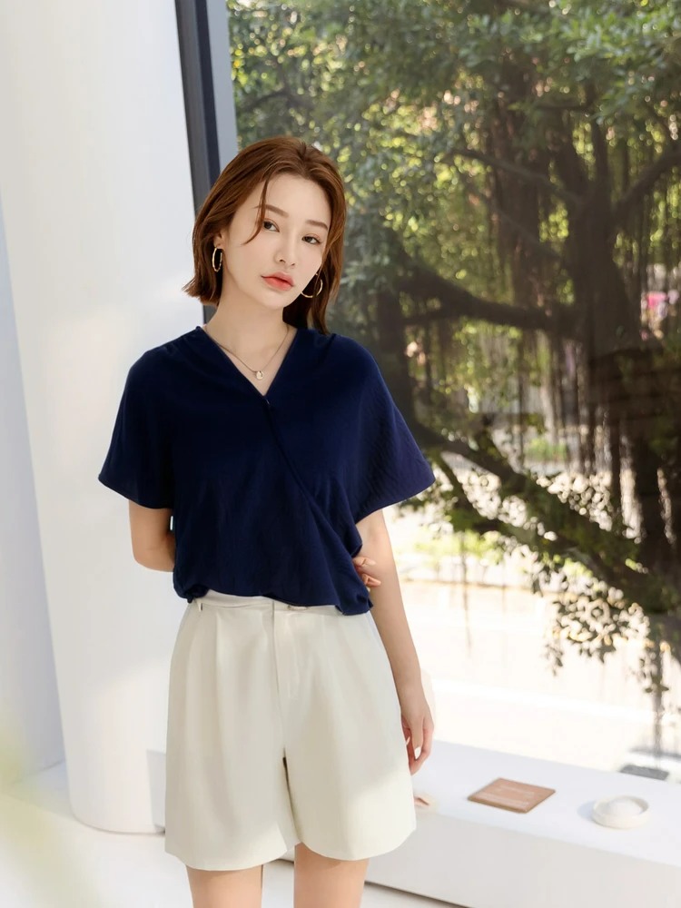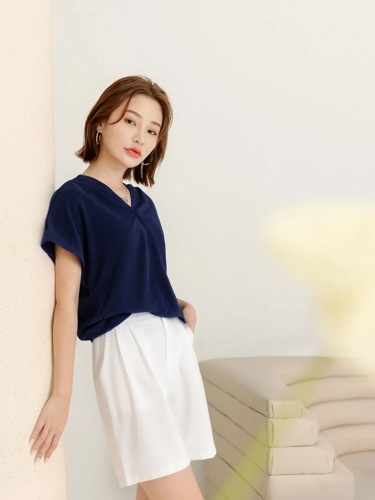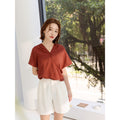 Weekend X Ob Design Women Basic Casual Solid V-Neck Drop Shoulder Loose Shirt Blouse Top Plus Size