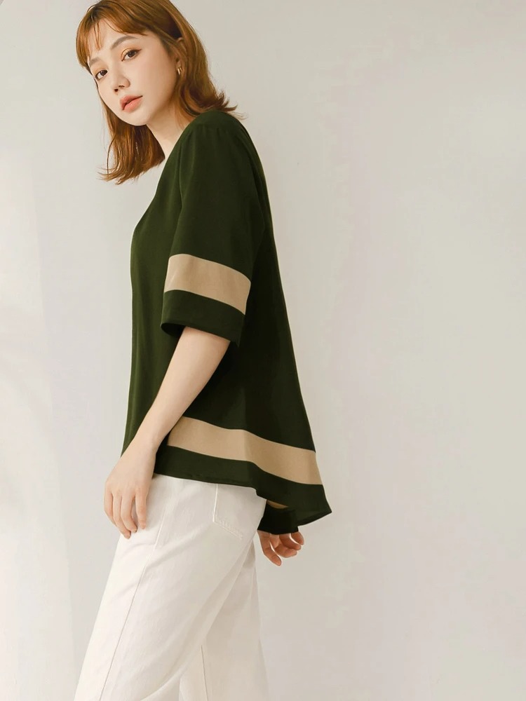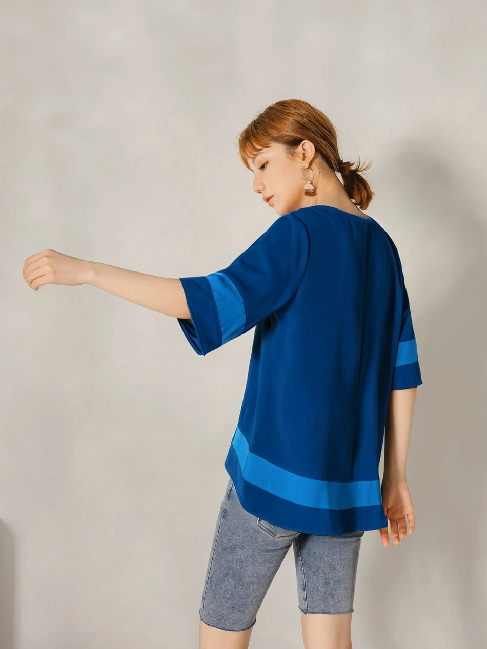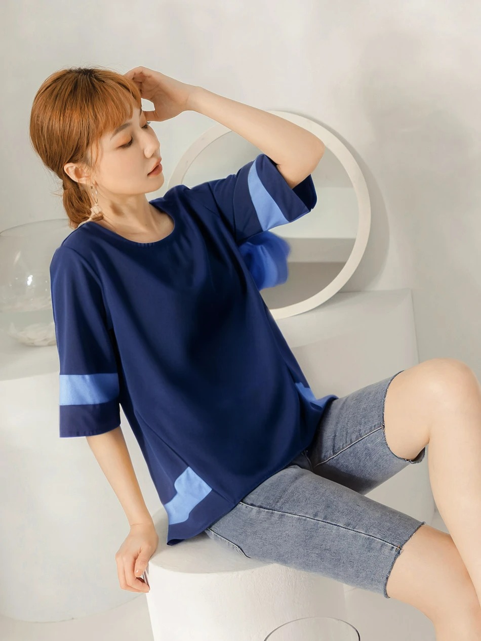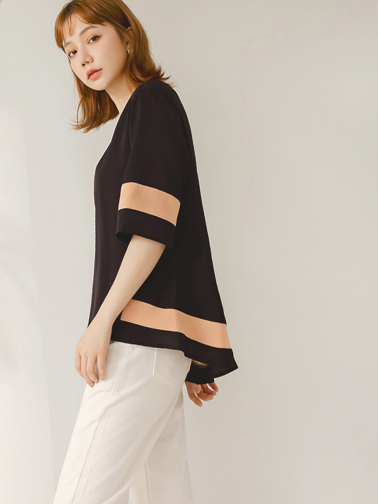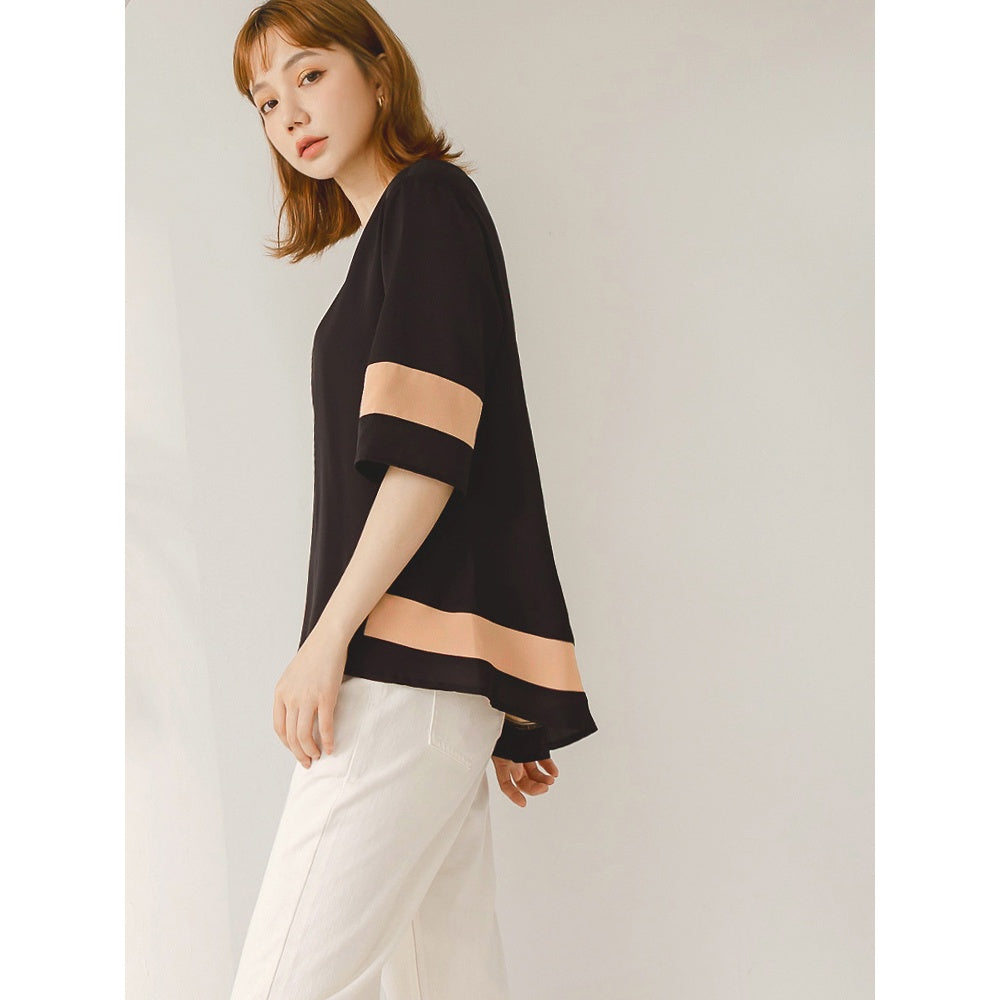 Weekend X Ob Design Women Casual Cooling Color Block Chiffon Asymmetrical Loose Blouse Shirt Top Plus Size
