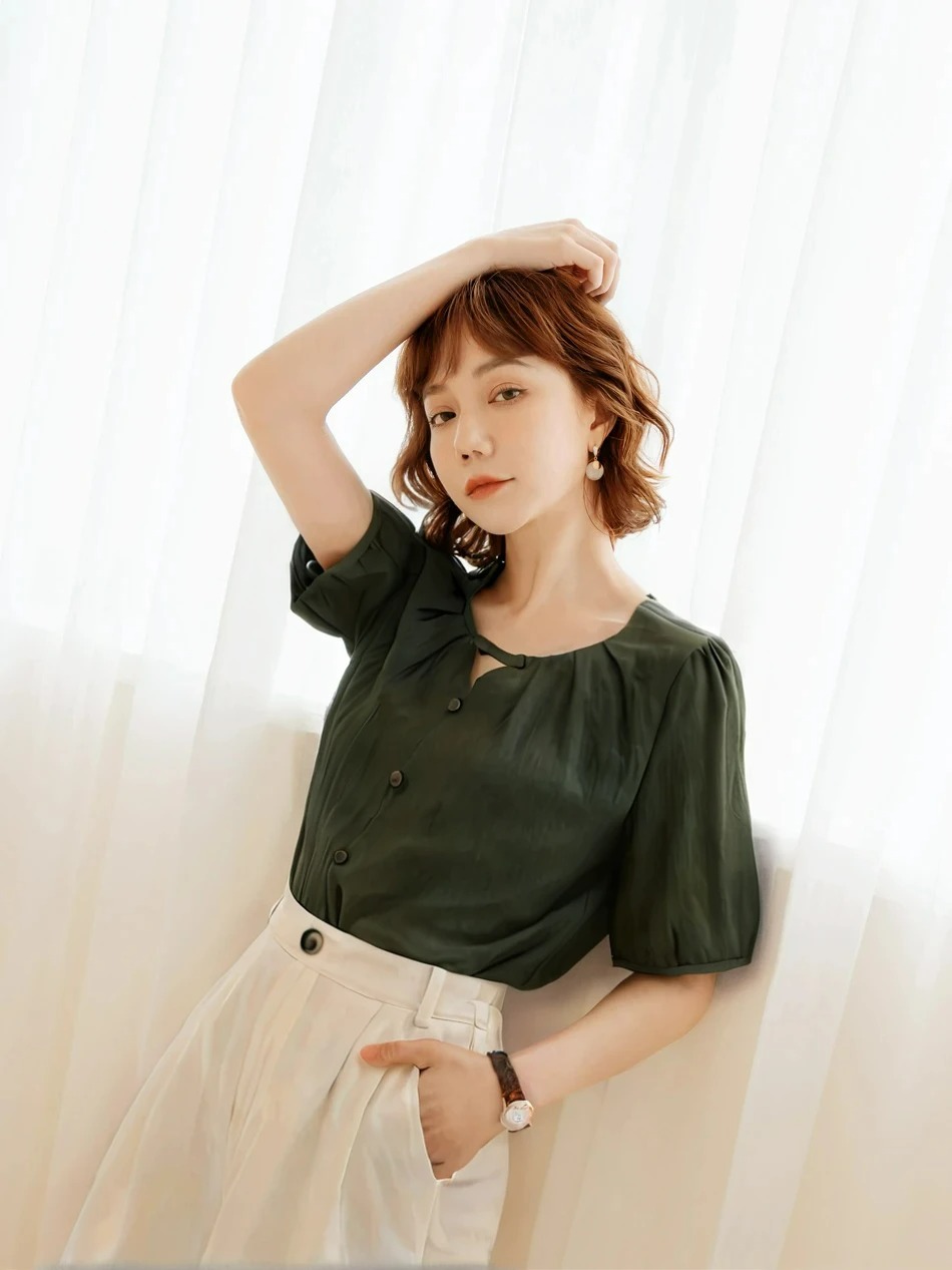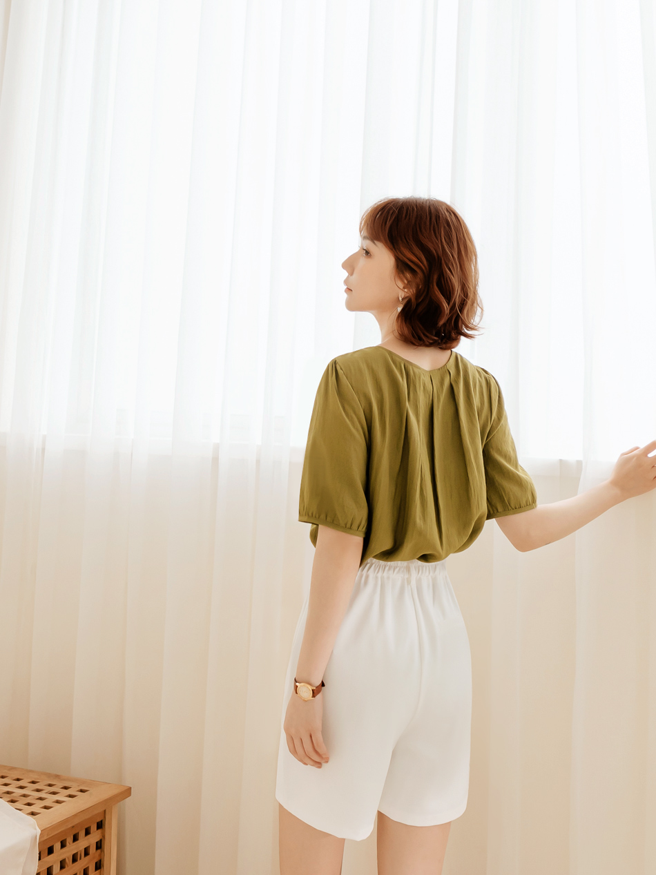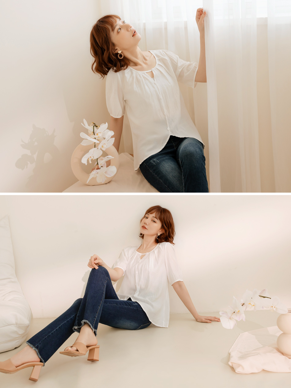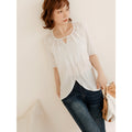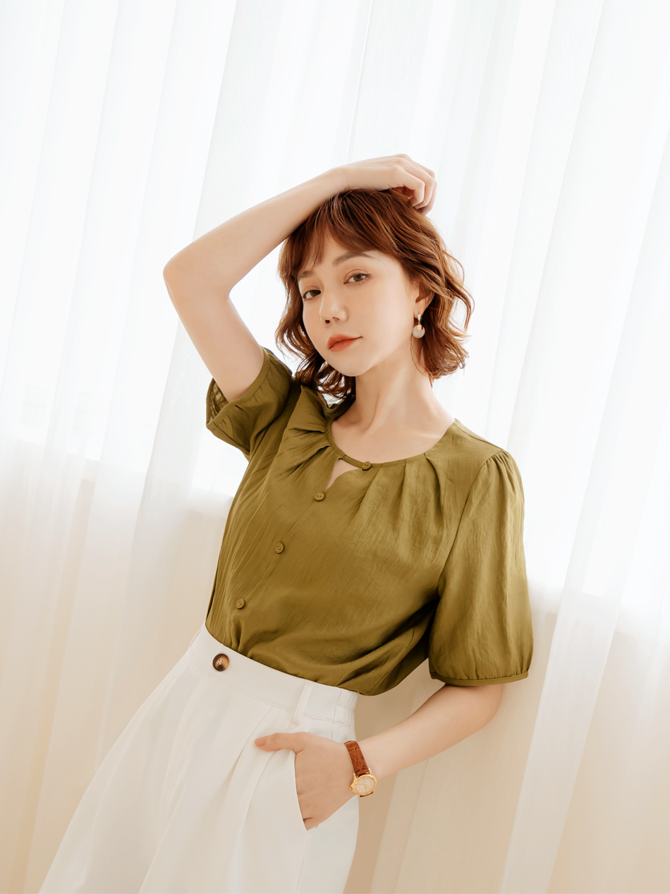 Weekend X Ob Design Women Casual Cutout Button Round Neck Pleated Short Sleeve Shirt Top Plus Size