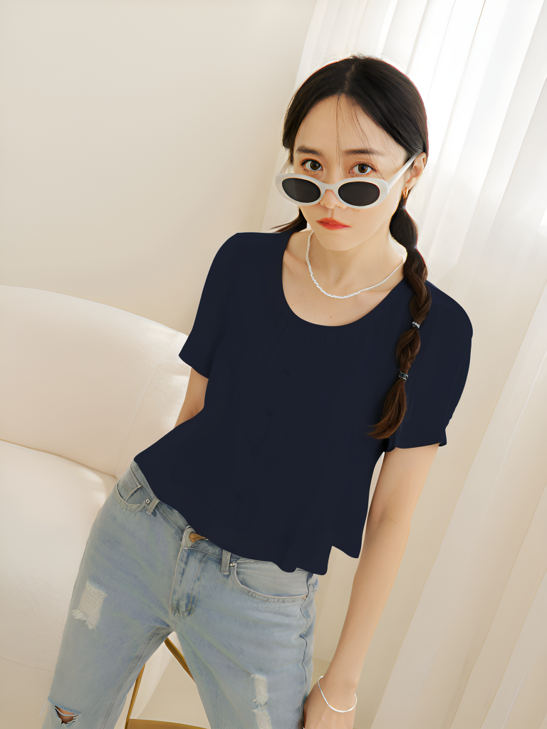 Weekend X Ob Design Women Casual Soft Button Short Sleeve Blouse Shirt Top Plus Size