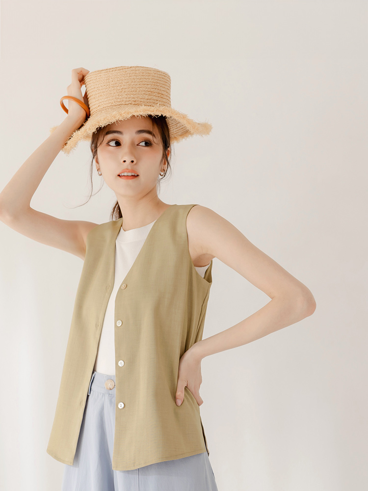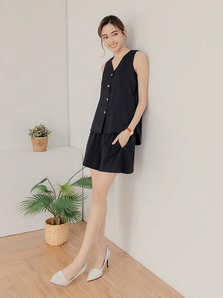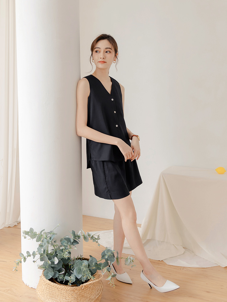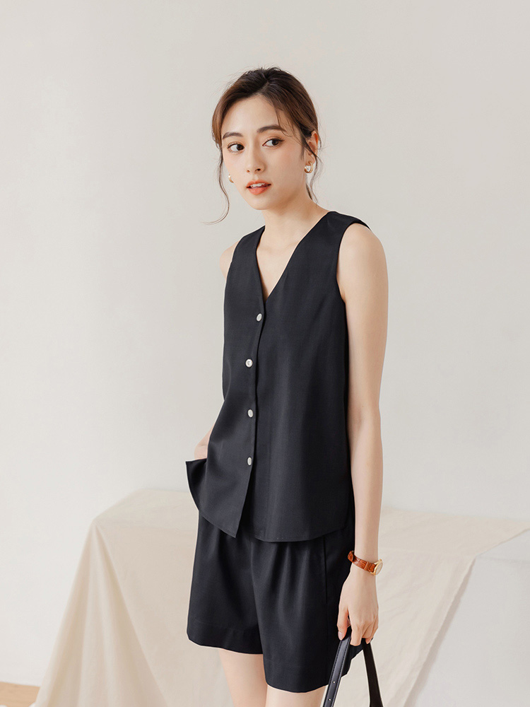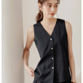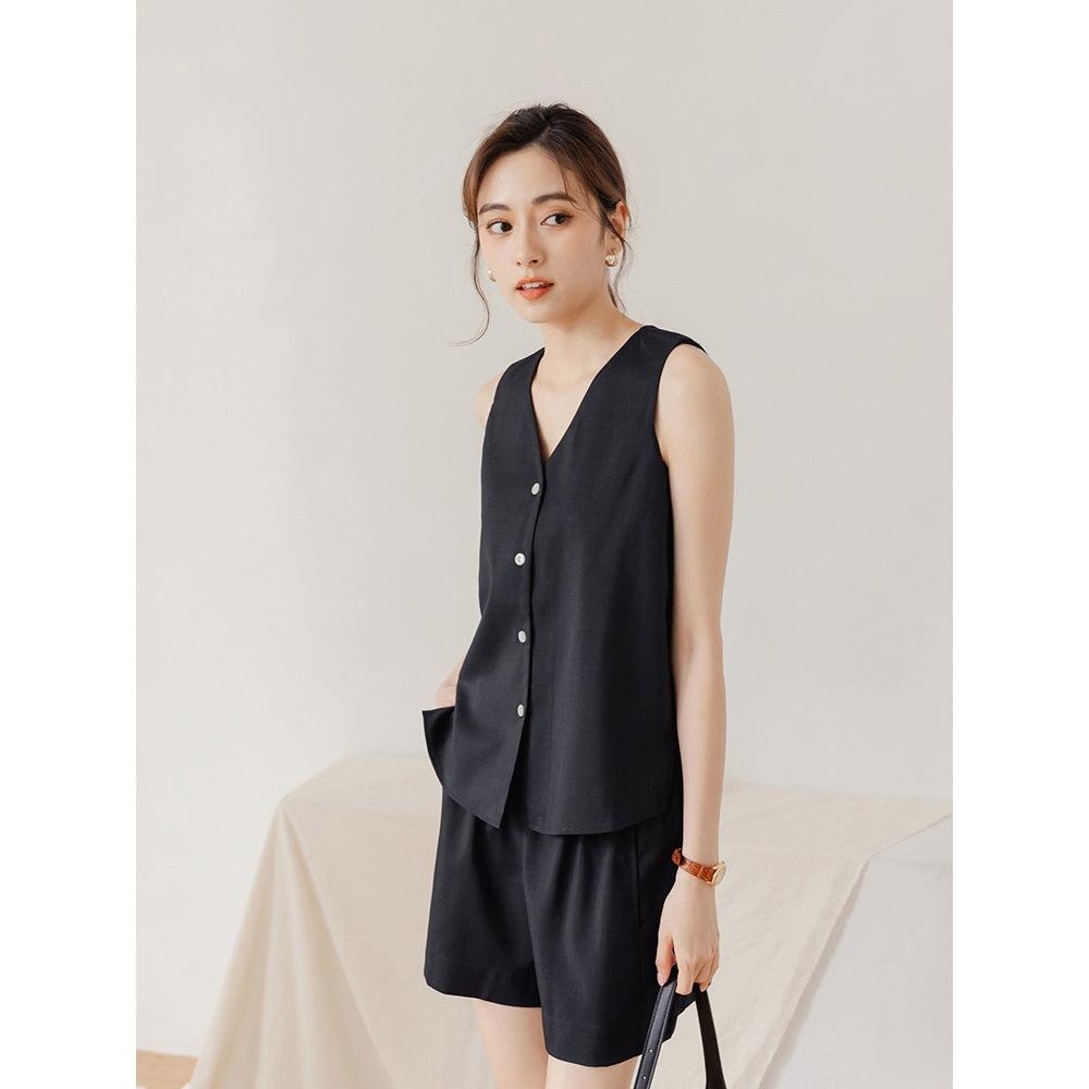 Weekend X Ob Design Women Work Casual Black V-Neck Button Sleeveless Vest Shirt Top Plus Size