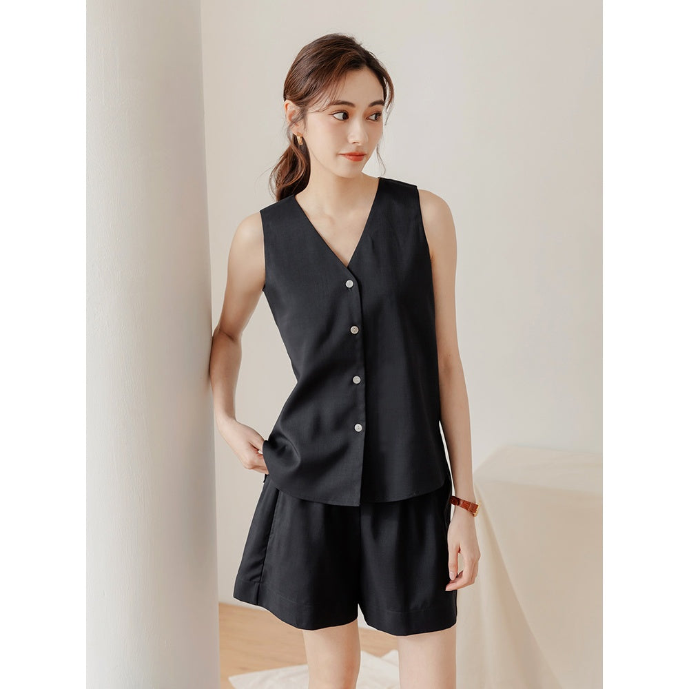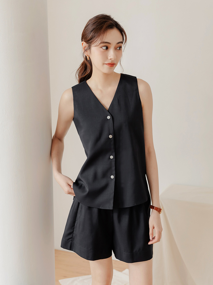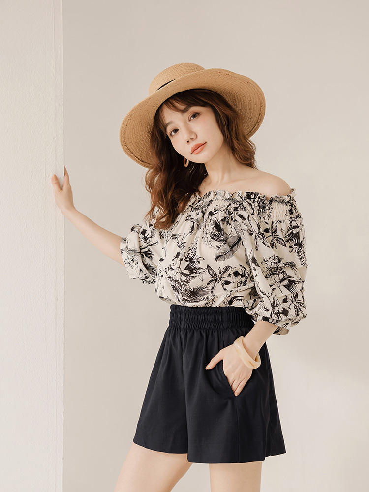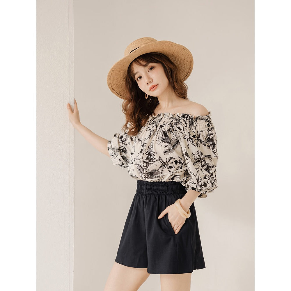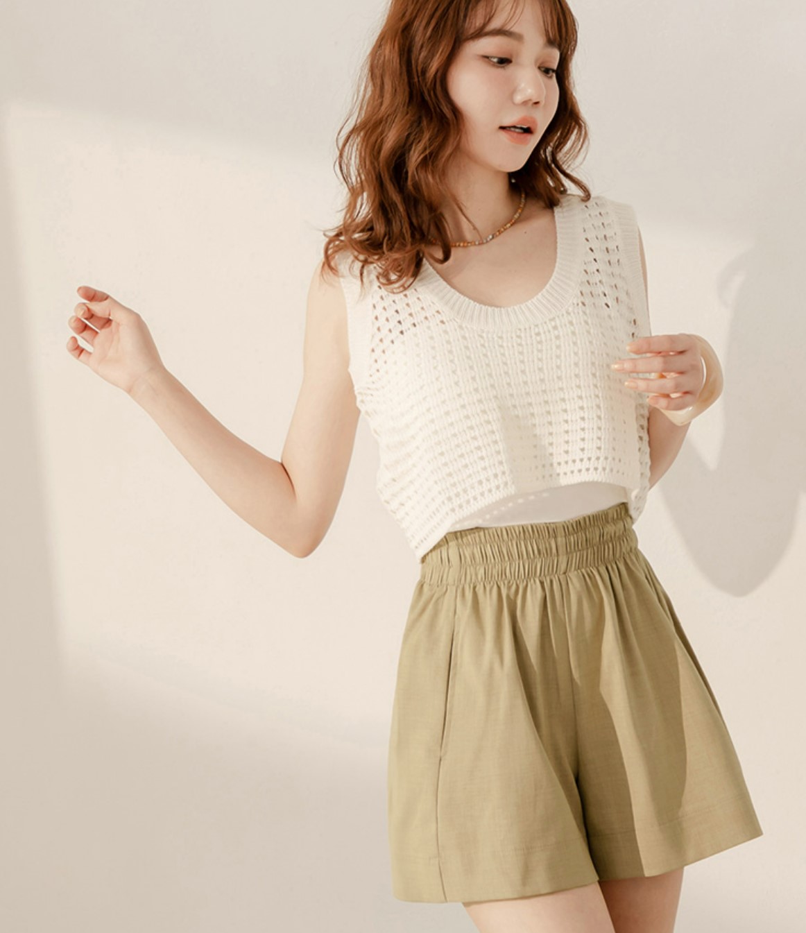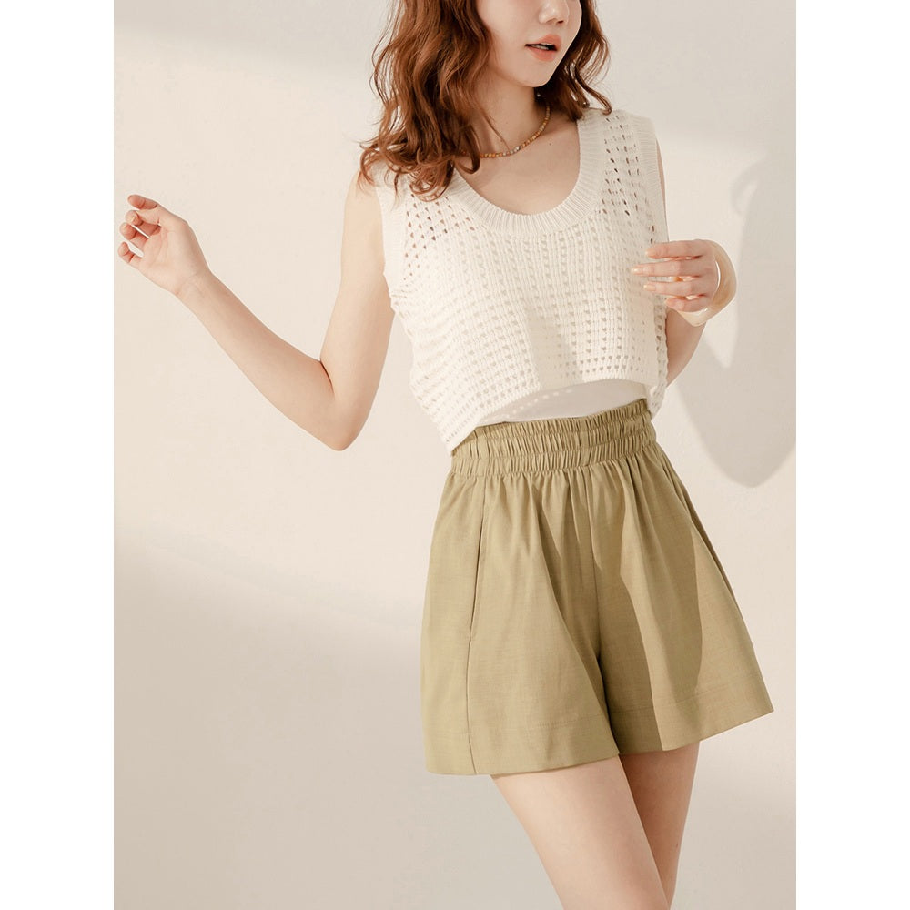 Weekend X Obdesign Women Casual Solid Color Elastic Waist Linen Cotton Pocket Shorts Pants Plus Size